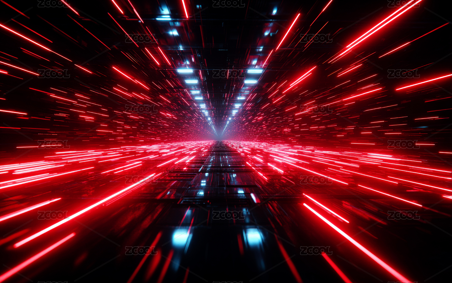 红色光束穿梭的未来科技空间