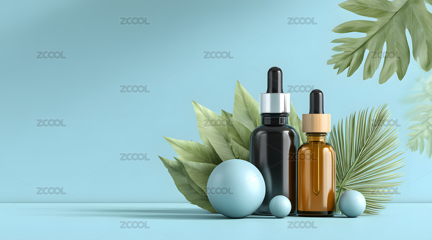 SPA化妆品容器瓶品牌模版俯视图概念背景