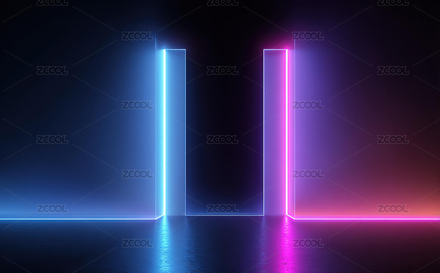 不同几何形状的五彩斑斓的舞台霓虹灯背景素材