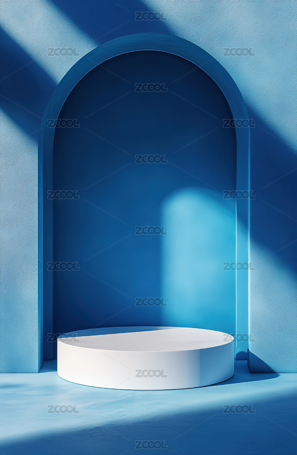 绿意光影下的圆形展台