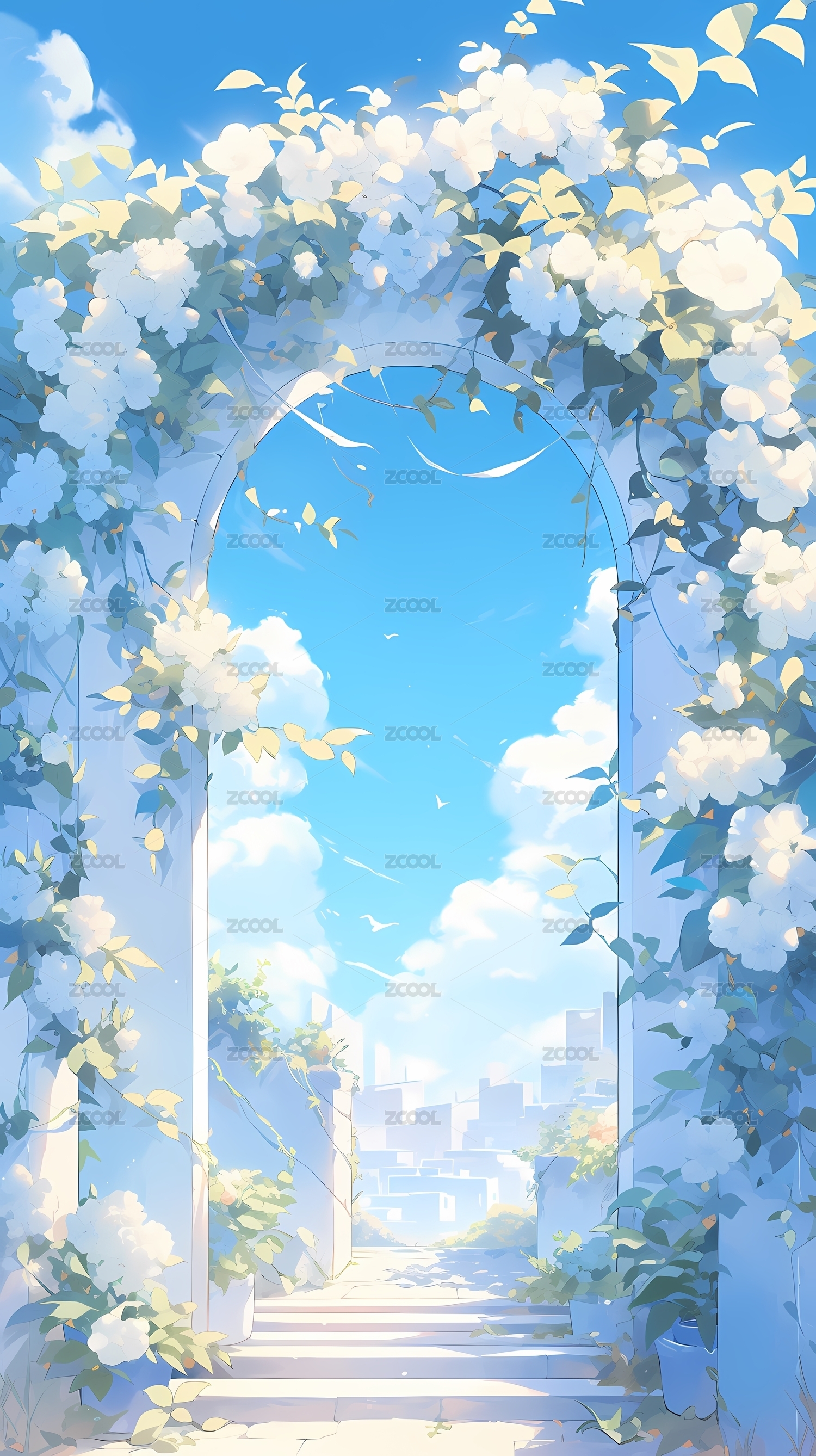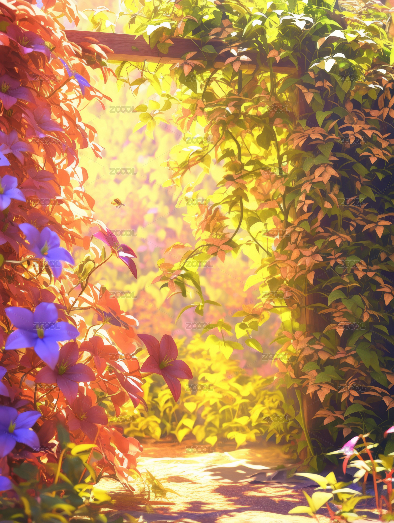 长苔藓毛绒植物石拱门儿童花园3D卡通插画