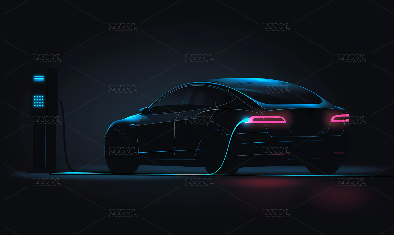 霓虹赛博朋克风电动汽车