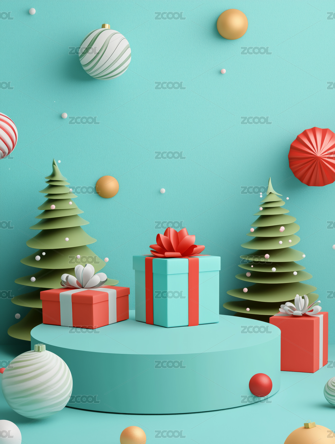 圣诞节,圣诞树,圣诞,花环,展台,3D,背景,插画,展厅,空间