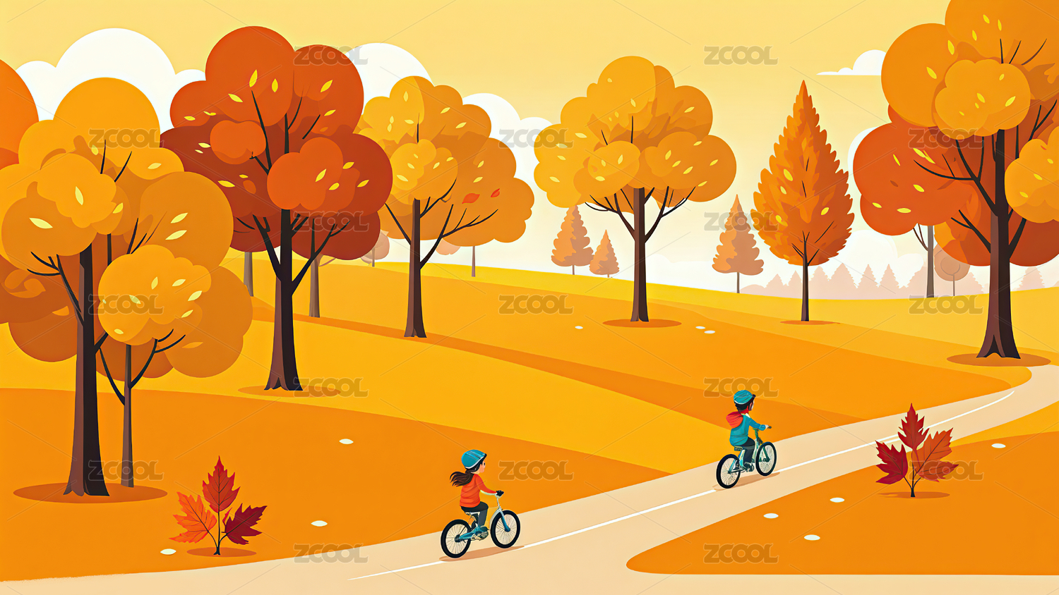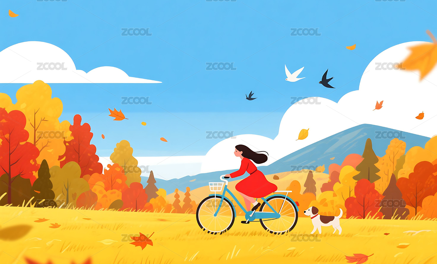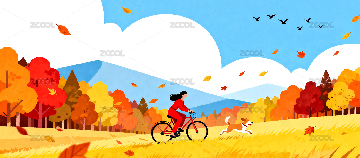 秋天秋季立秋秋分自然户外风景卡通漫画插画