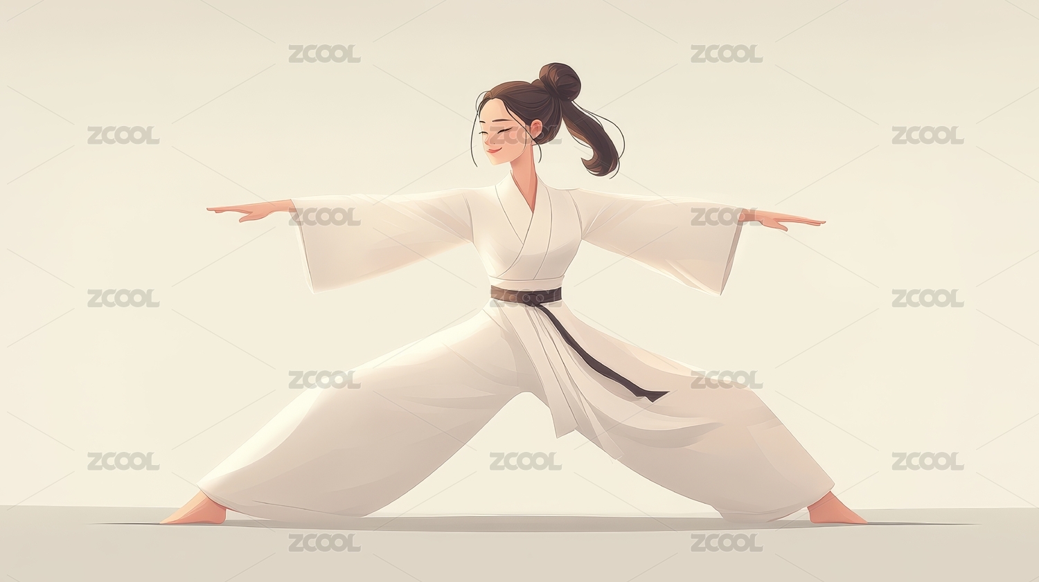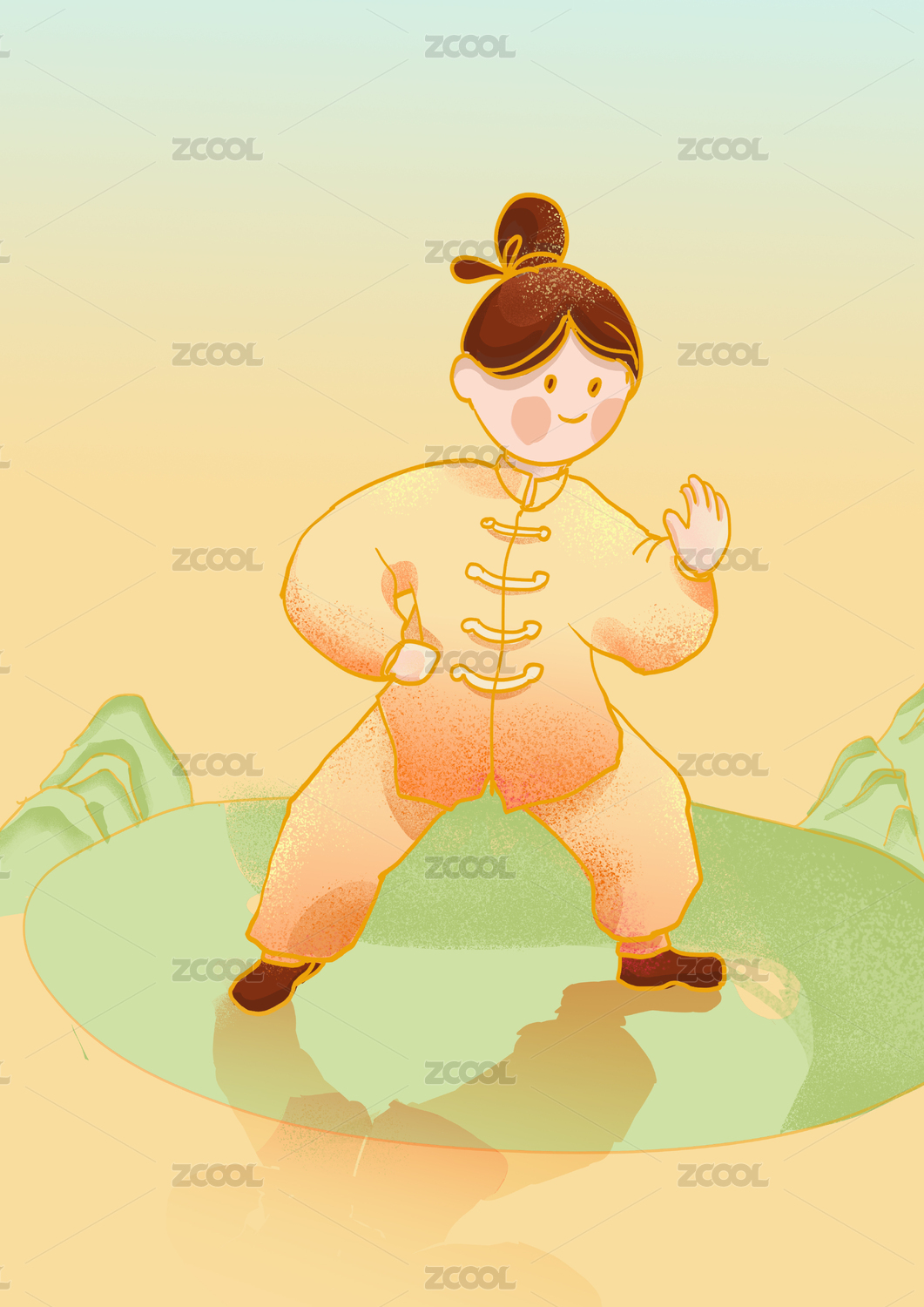 HEYYTDK2021,打太极,运动,女性,扁平风,插画