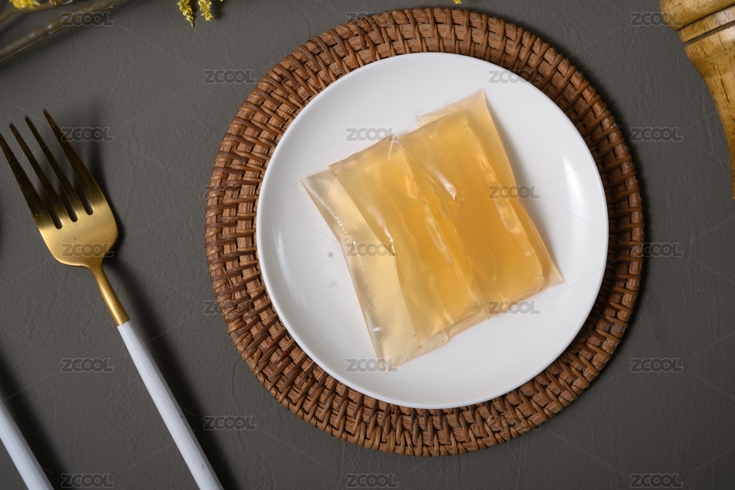 桌面上的盘子里的干爽通透的吉利丁
