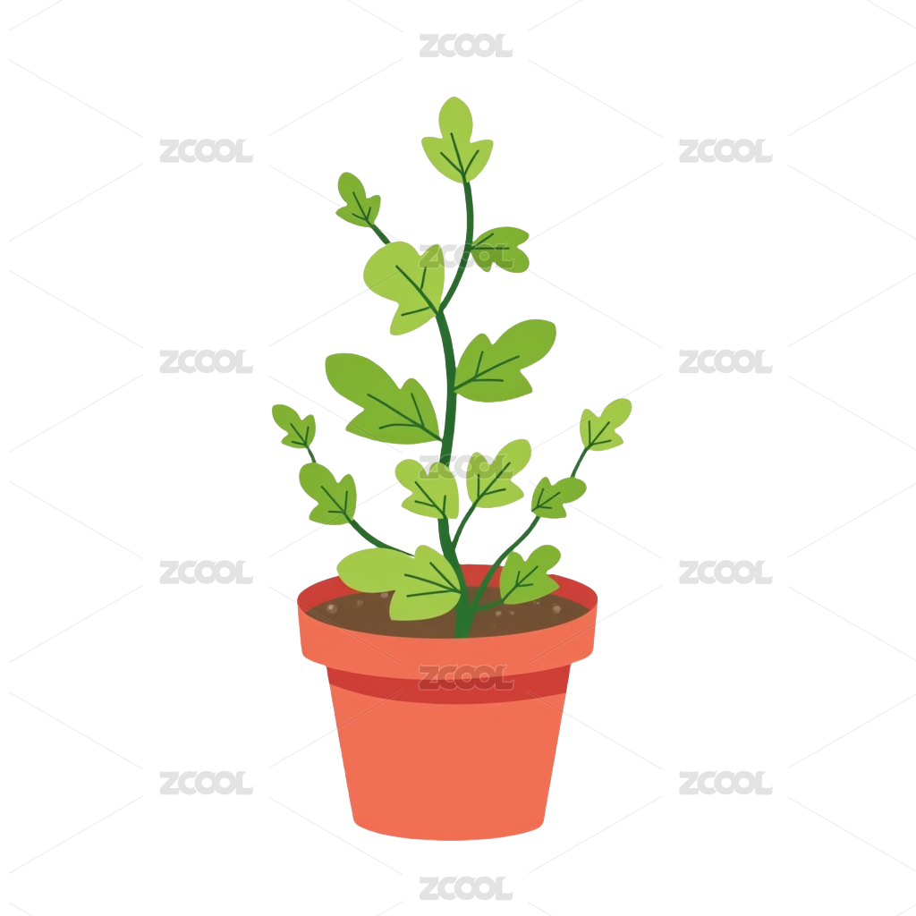 古风文艺绿植古人生活多肉盆景矢量手绘插画
