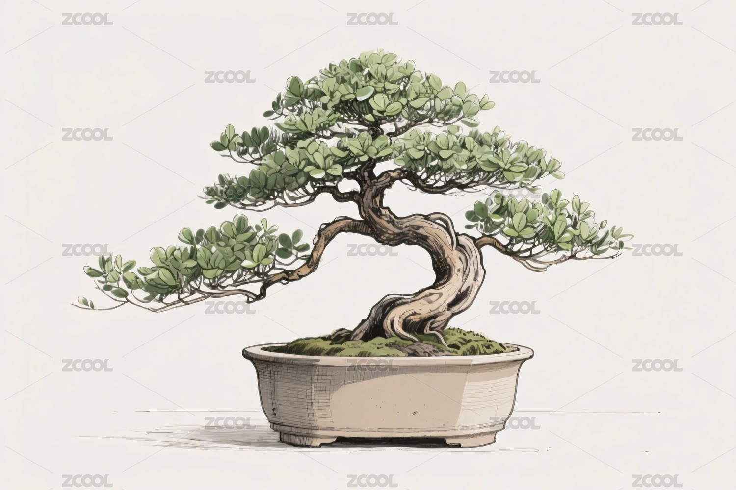 盆景,装饰画,工笔,中国风,国画,文艺,矢量,线稿,植物,传统
