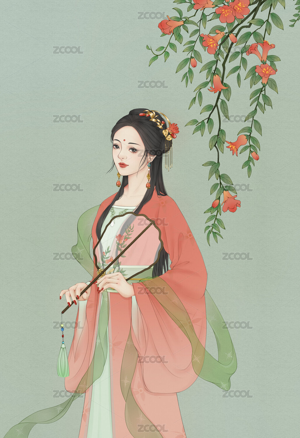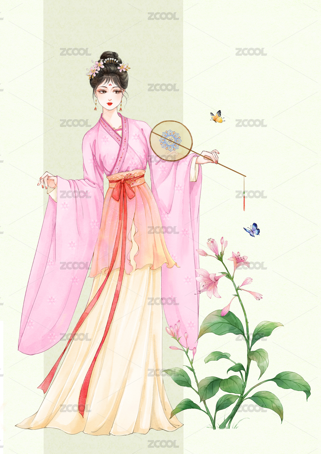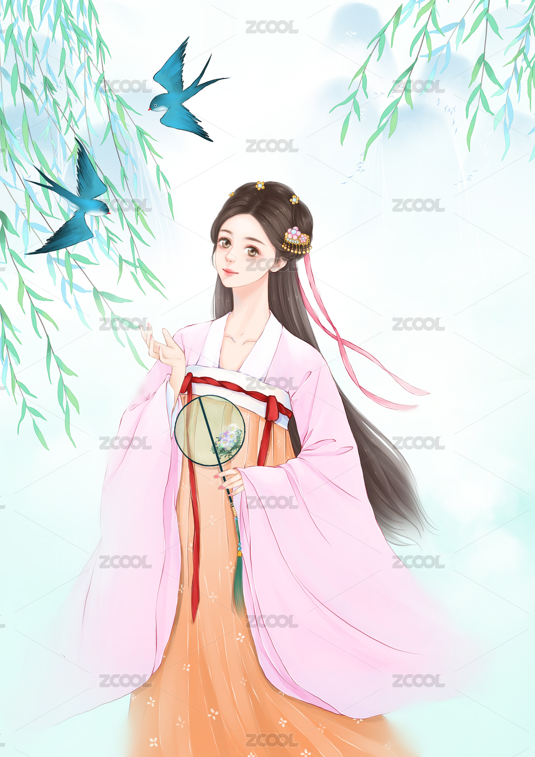 手绘插画古装美人女孩立绘