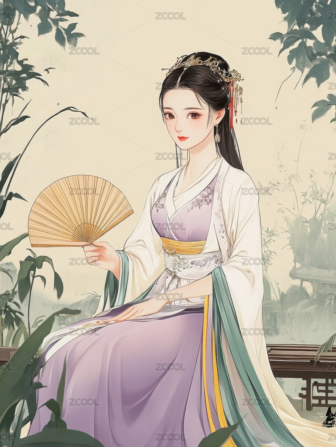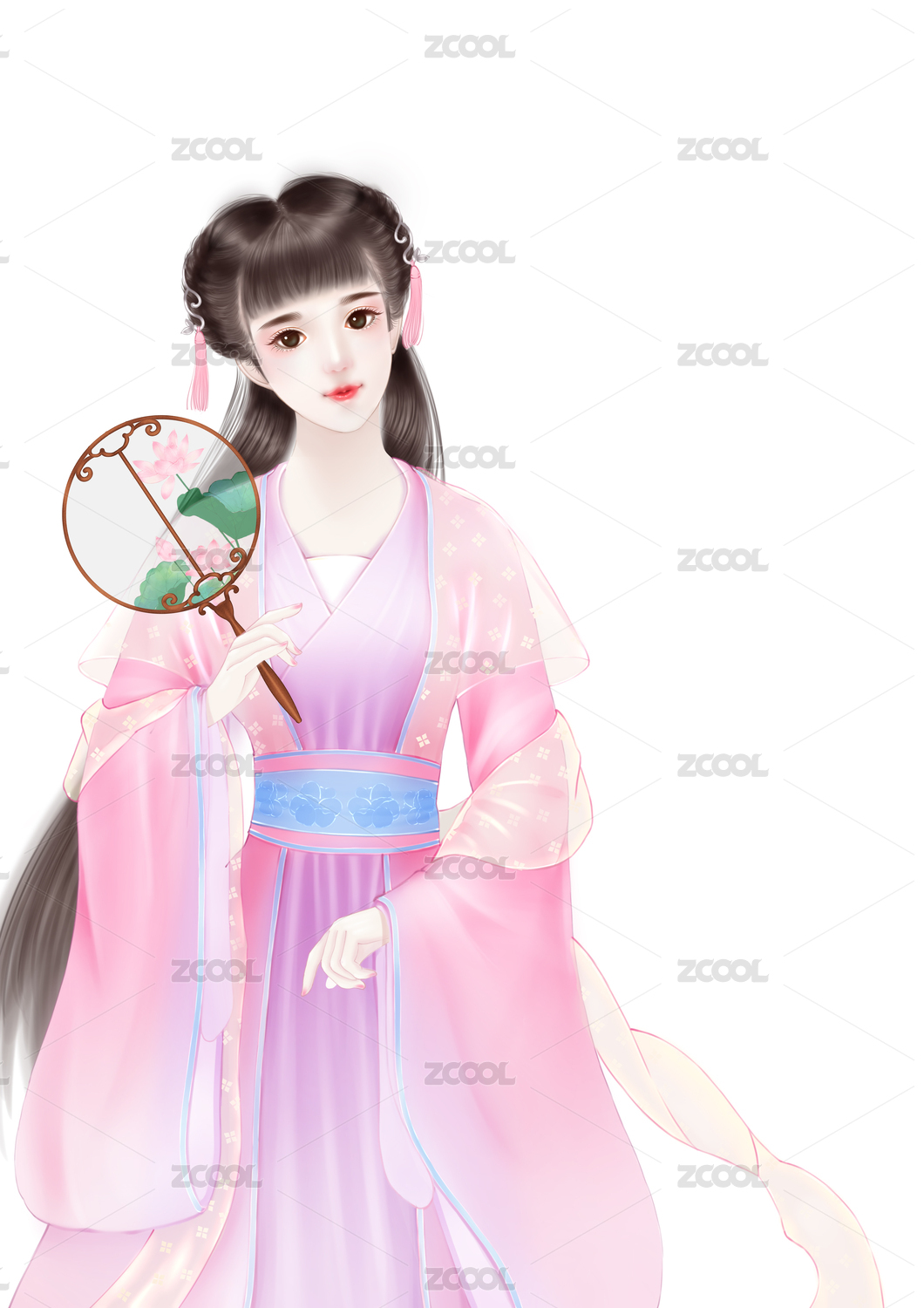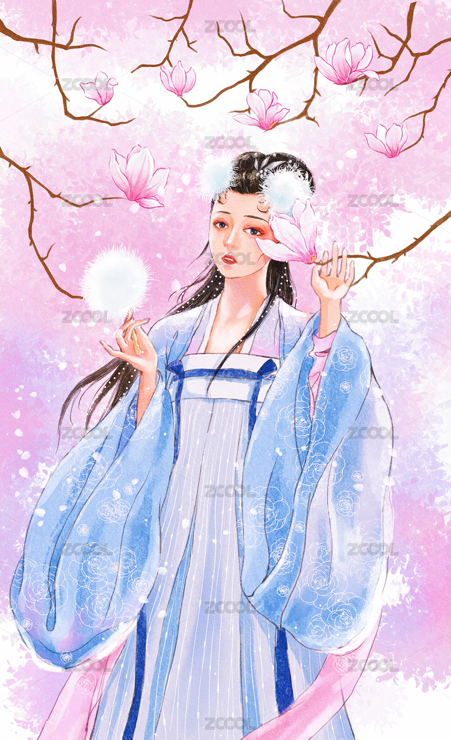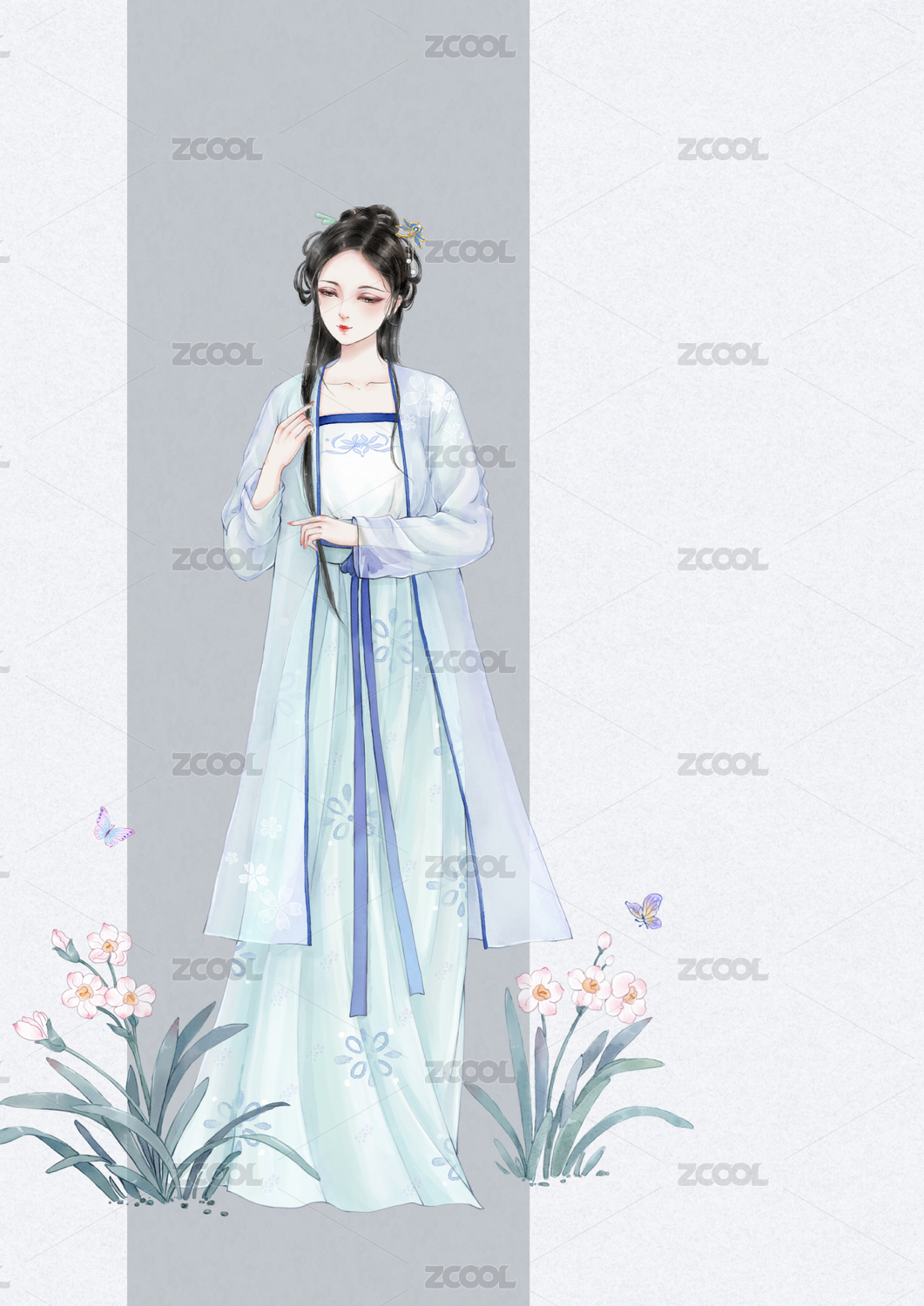 手绘插画古装美人女孩立绘