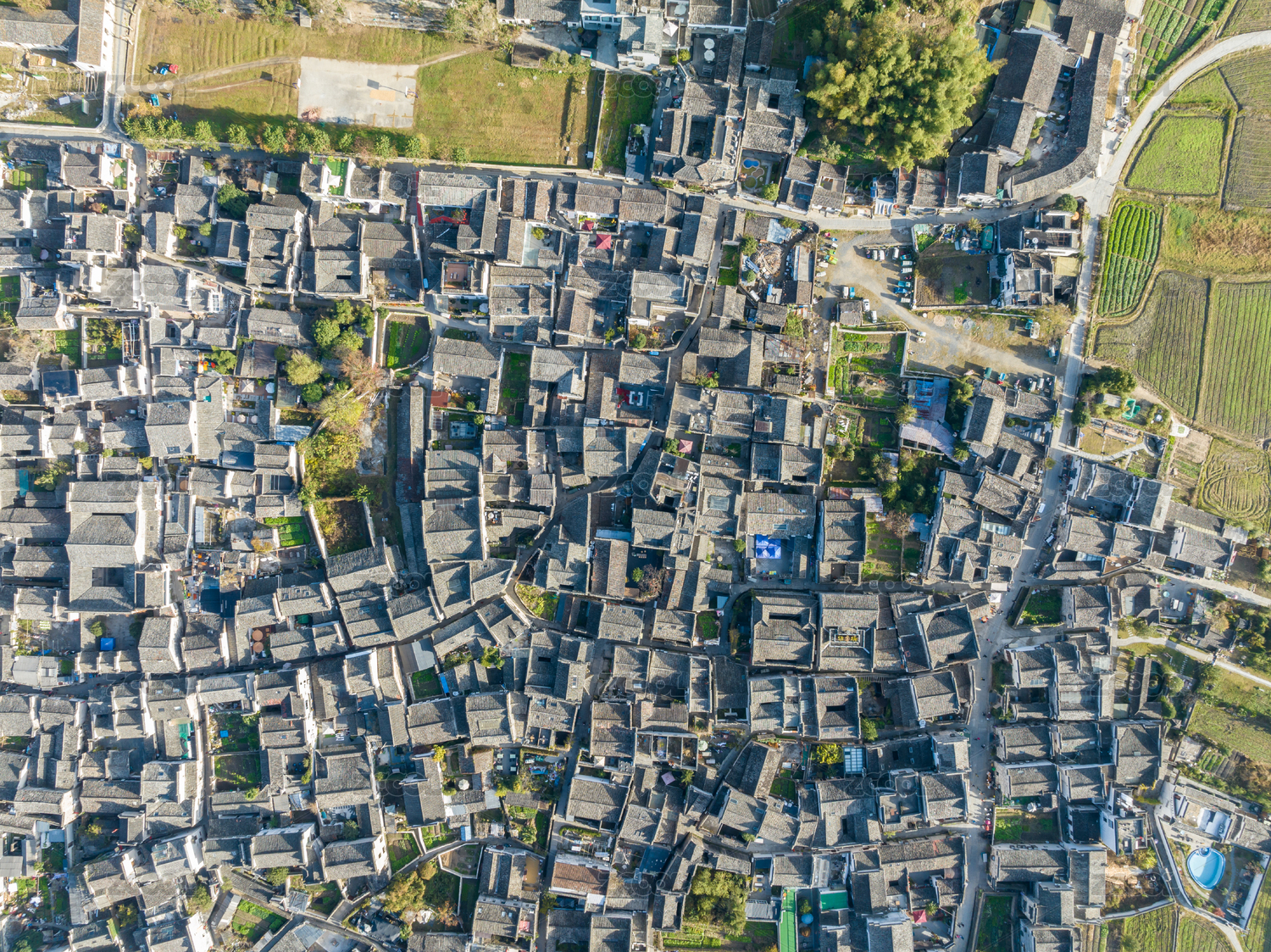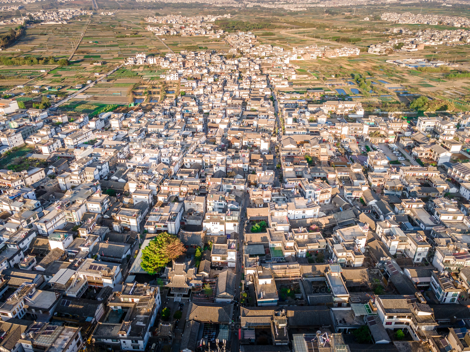 航拍云南大理洱海边龙龛村乡村民居建筑群