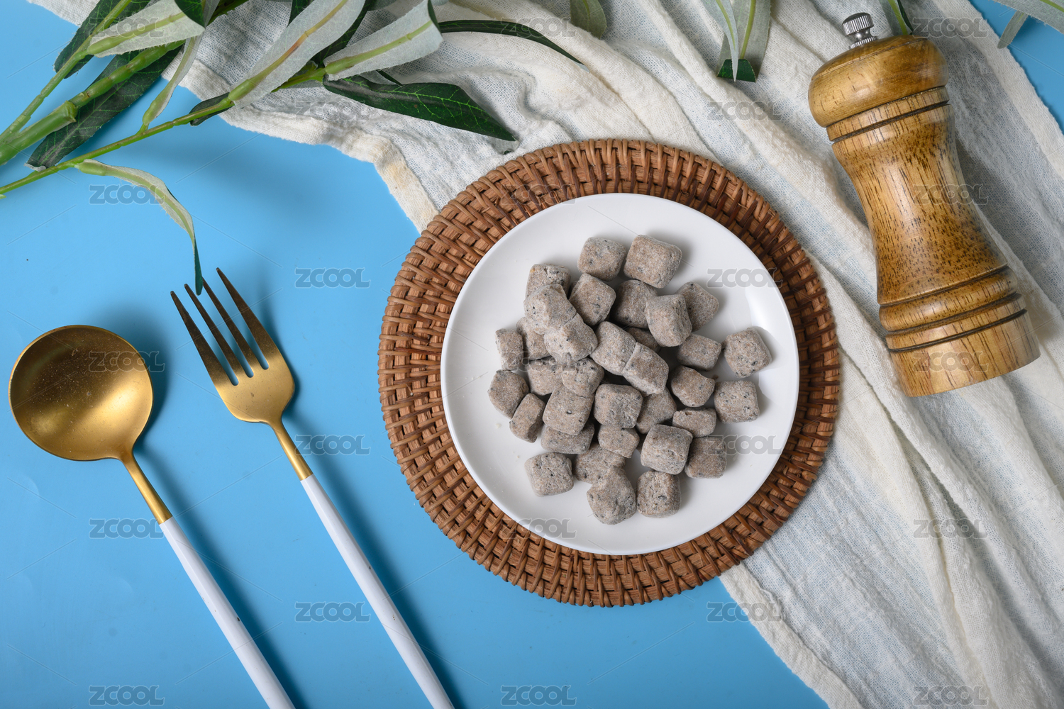 桌面上的盘子里的美味可口的八珍糕