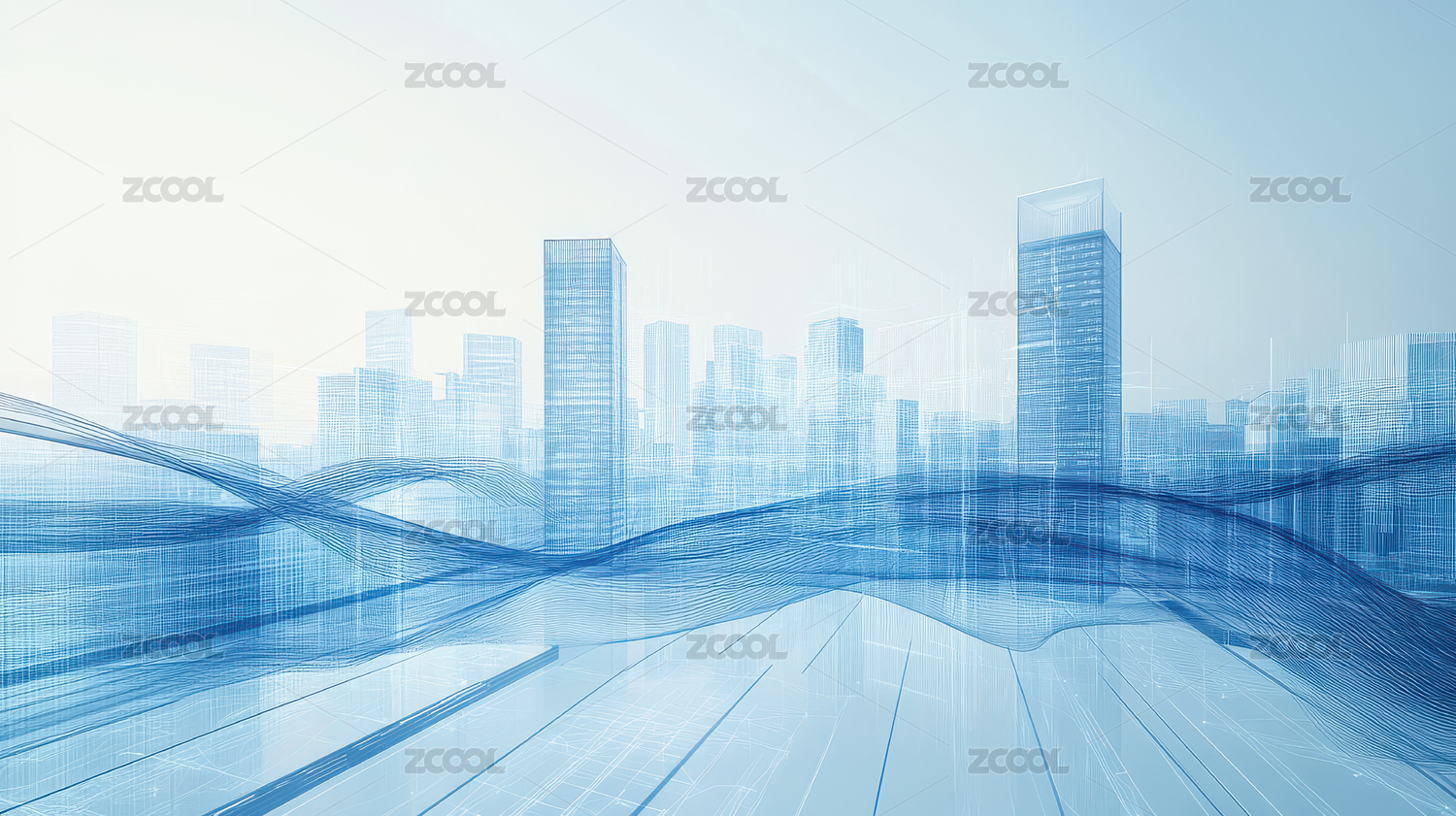 数码科技蓝白色未来城市玻璃建筑海报背景