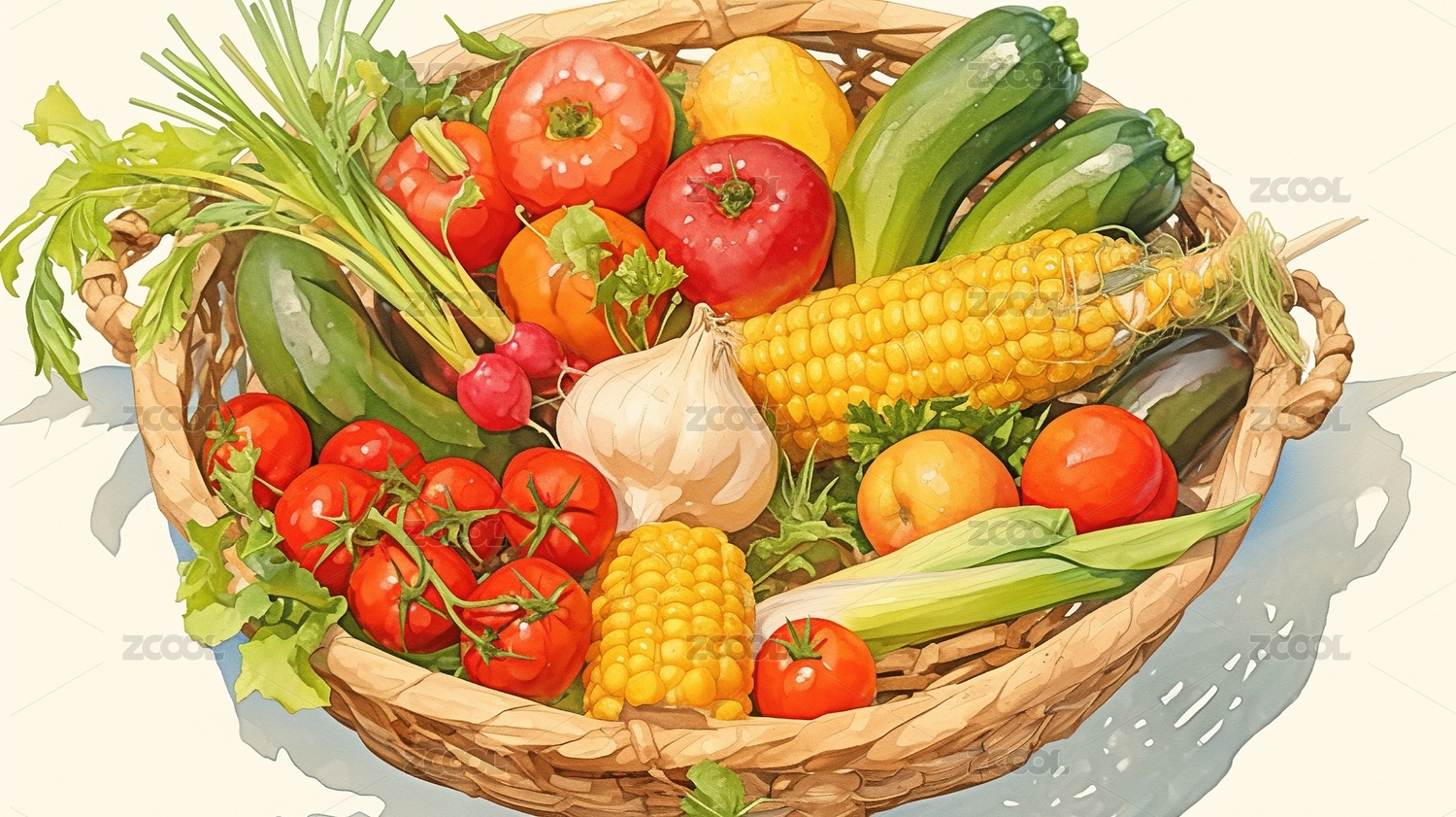 蔬菜,水果,合集,插画,背景,茄子,番茄,樱桃,胡萝卜,苹果