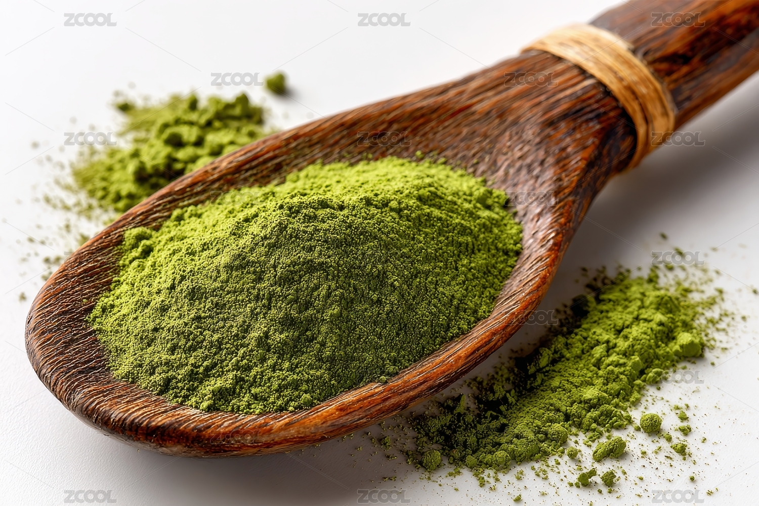抹茶粉末木勺特写