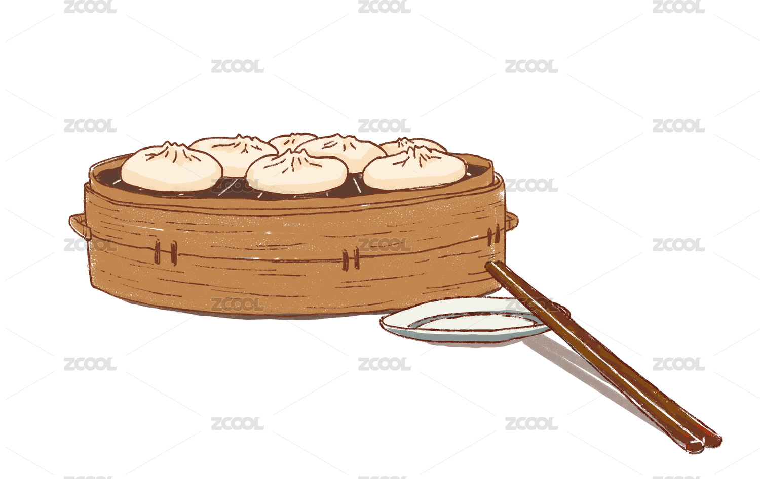 一屉中国传统美食灌汤包 手绘插画