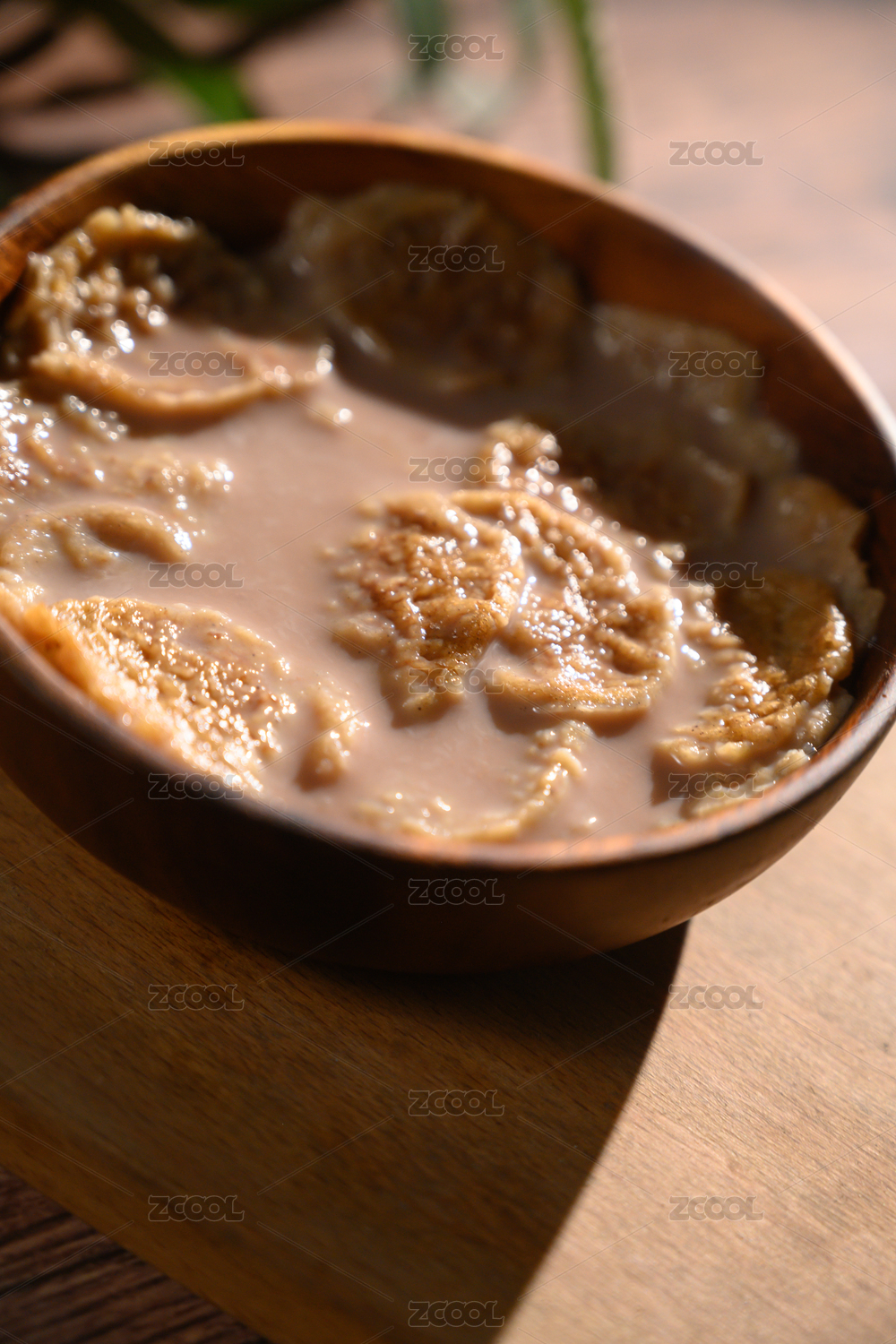桌面上的盘子里的牛奶鹰嘴豆片
