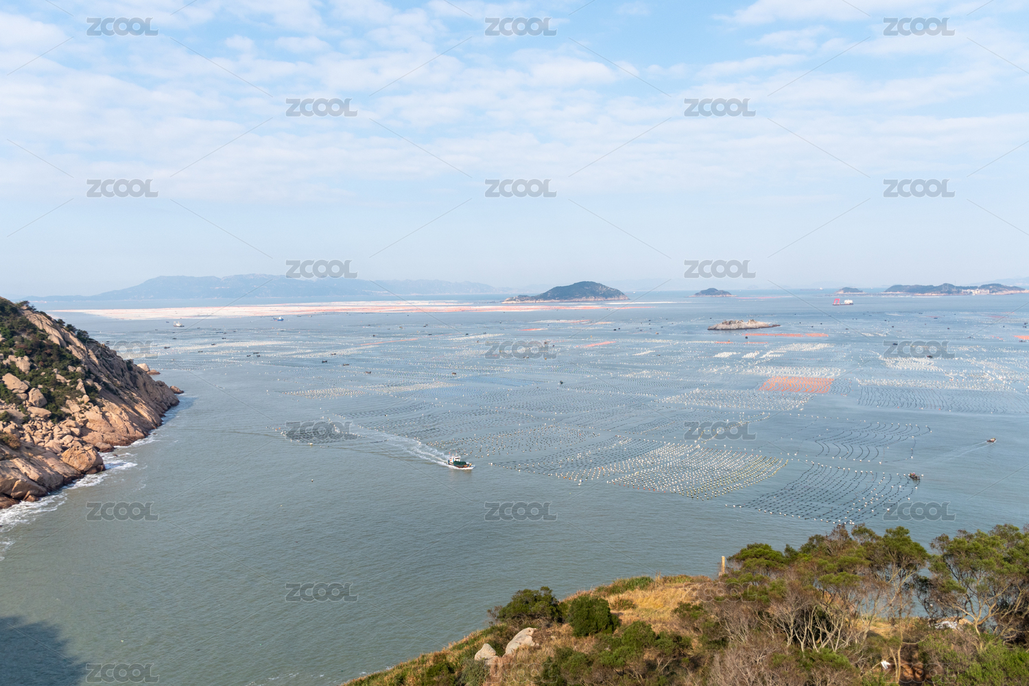 福建省福州市连江县旗冠顶-晴空下海湾和渔