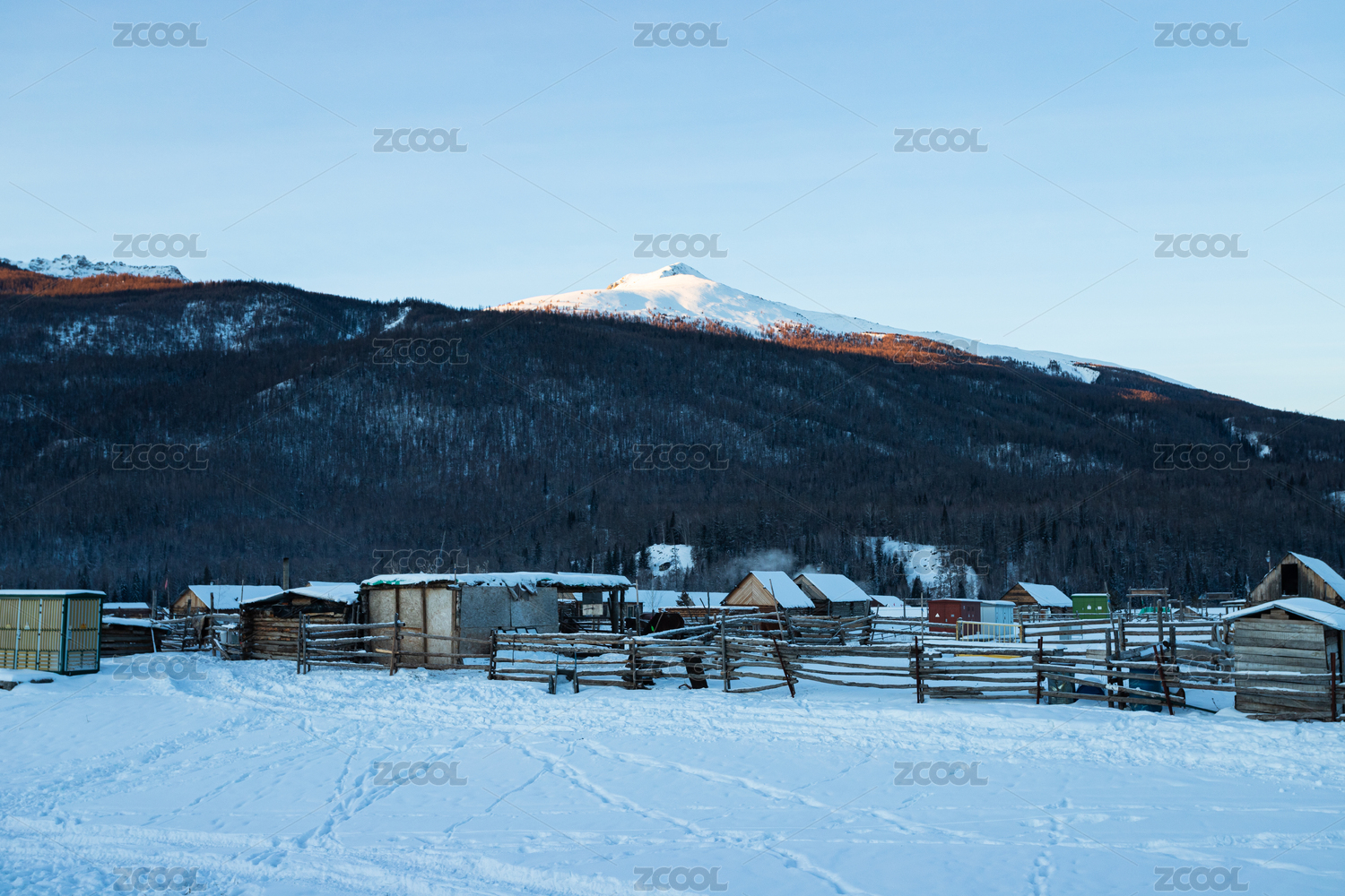 中国新疆禾木村庄木栅栏