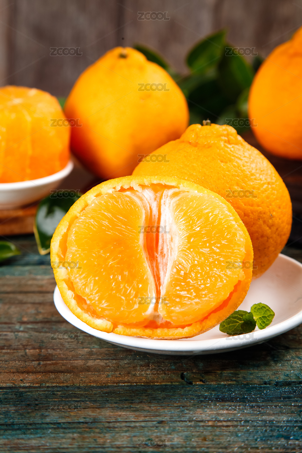 盘子里装着新鲜爱媛果冻橙和果冻橙果肉