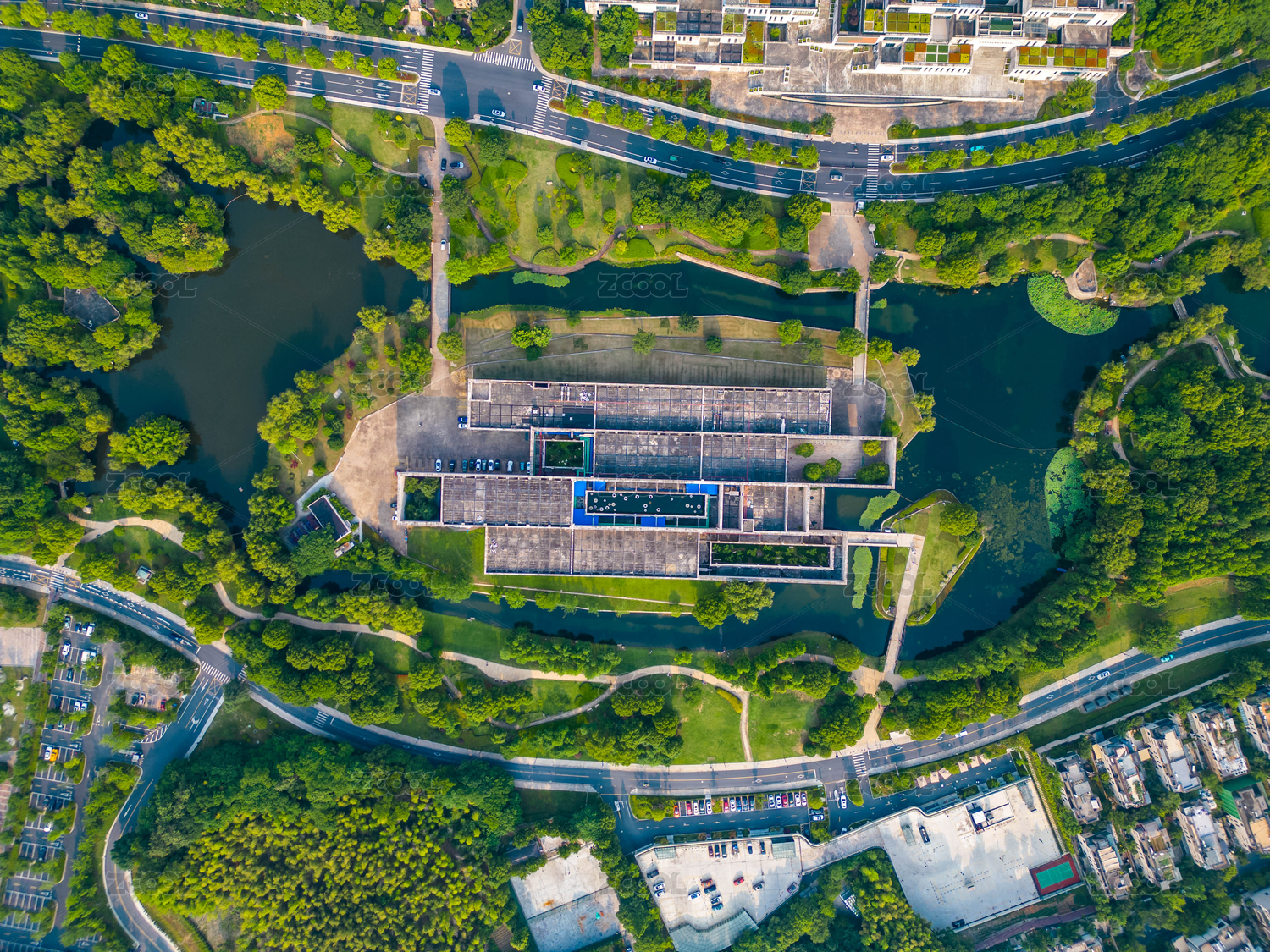 航拍中国河南郑州郑东新区北龙湖湿地公园