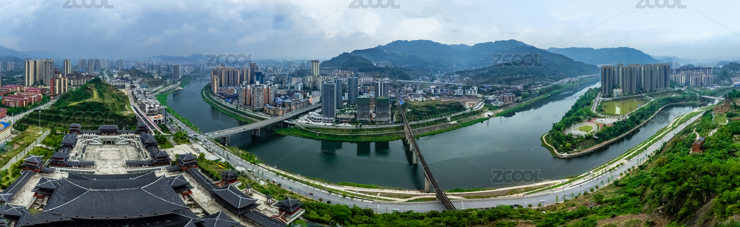 中国四川省达州市720度全景高楼大厦建筑