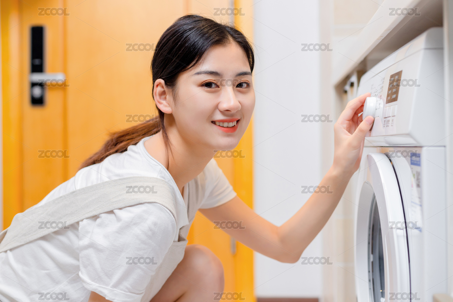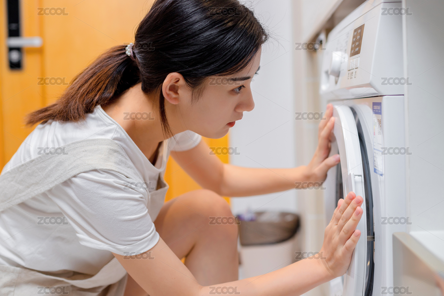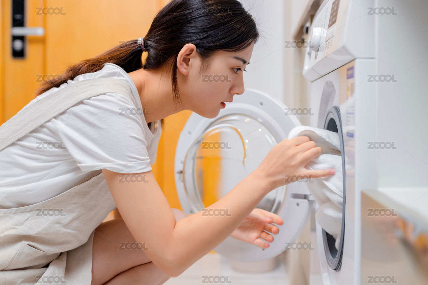 洗衣服,家常杂务,杂物间,家务,洗衣机,一个人,女人,室内,生活方式,东方女性