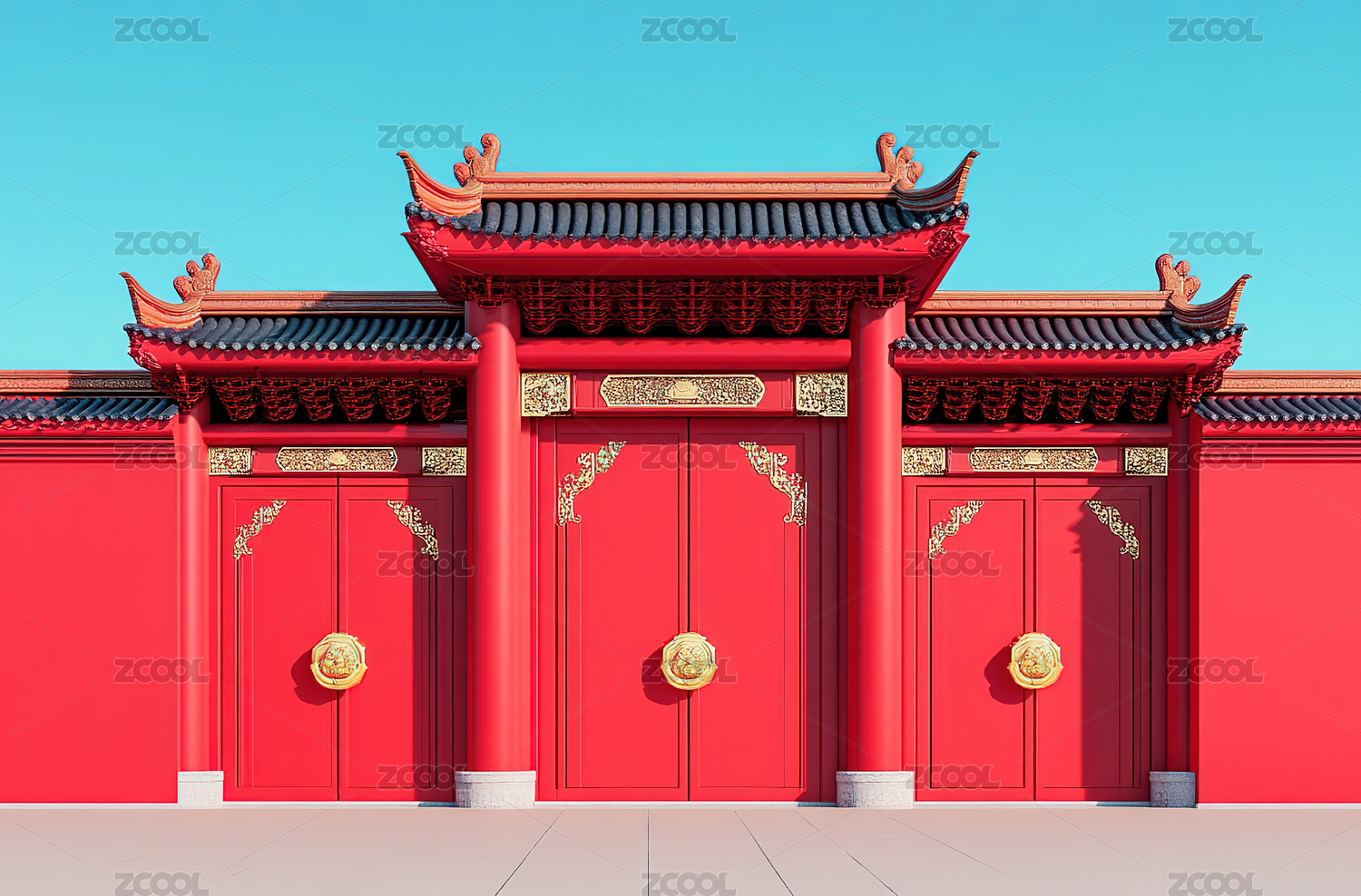 贺卡,描金,简约,中国风,古建筑,古风,对称,中国红