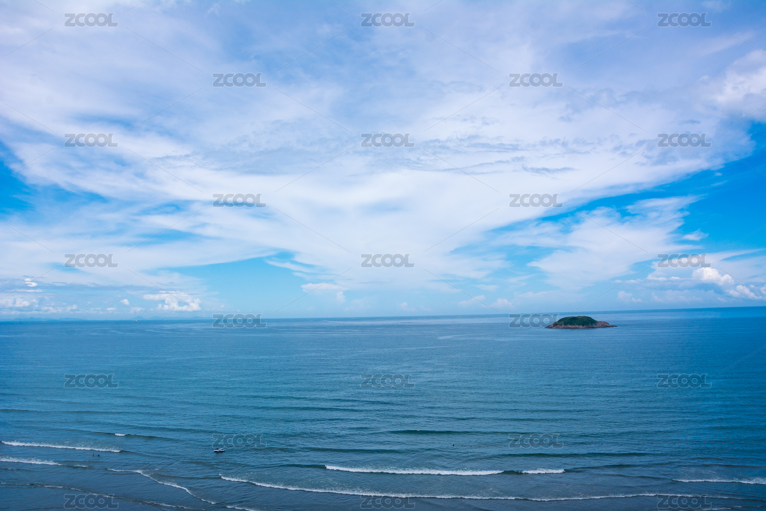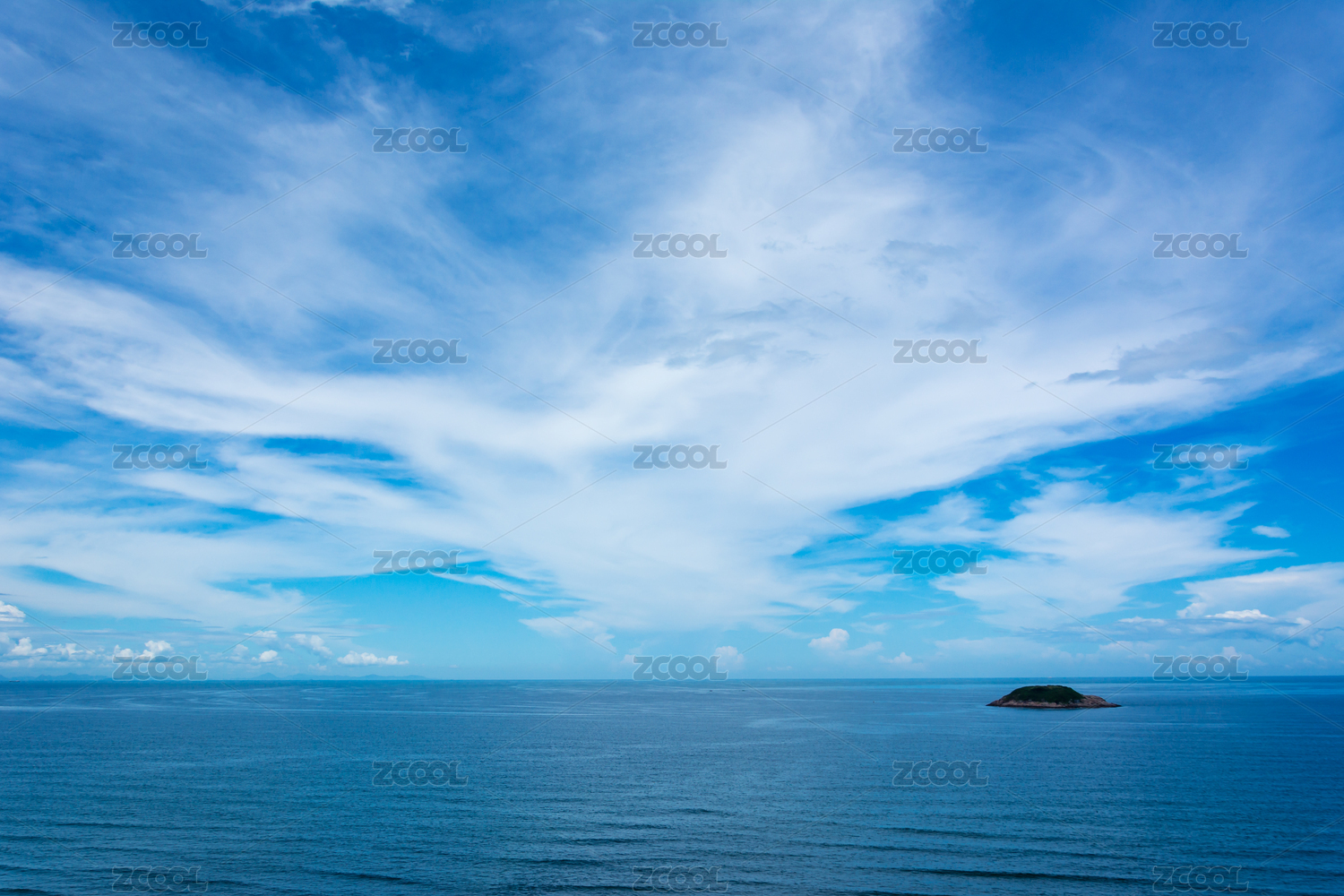 蔚蓝的天空下一望无际的大海