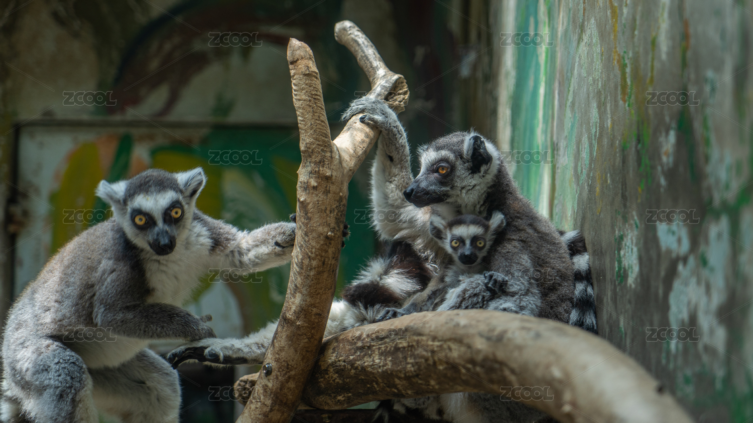 动物园环尾狐猴树枝栖息