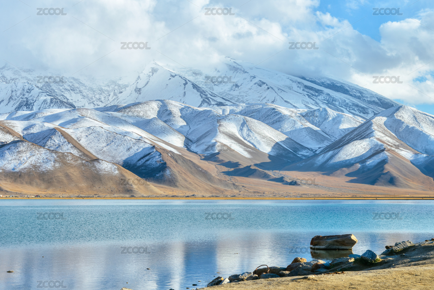 中国,新疆,喀什,阿克陶县,白沙湖,白沙山景区,多云,帕米尔高原,湖畔,高山丘陵