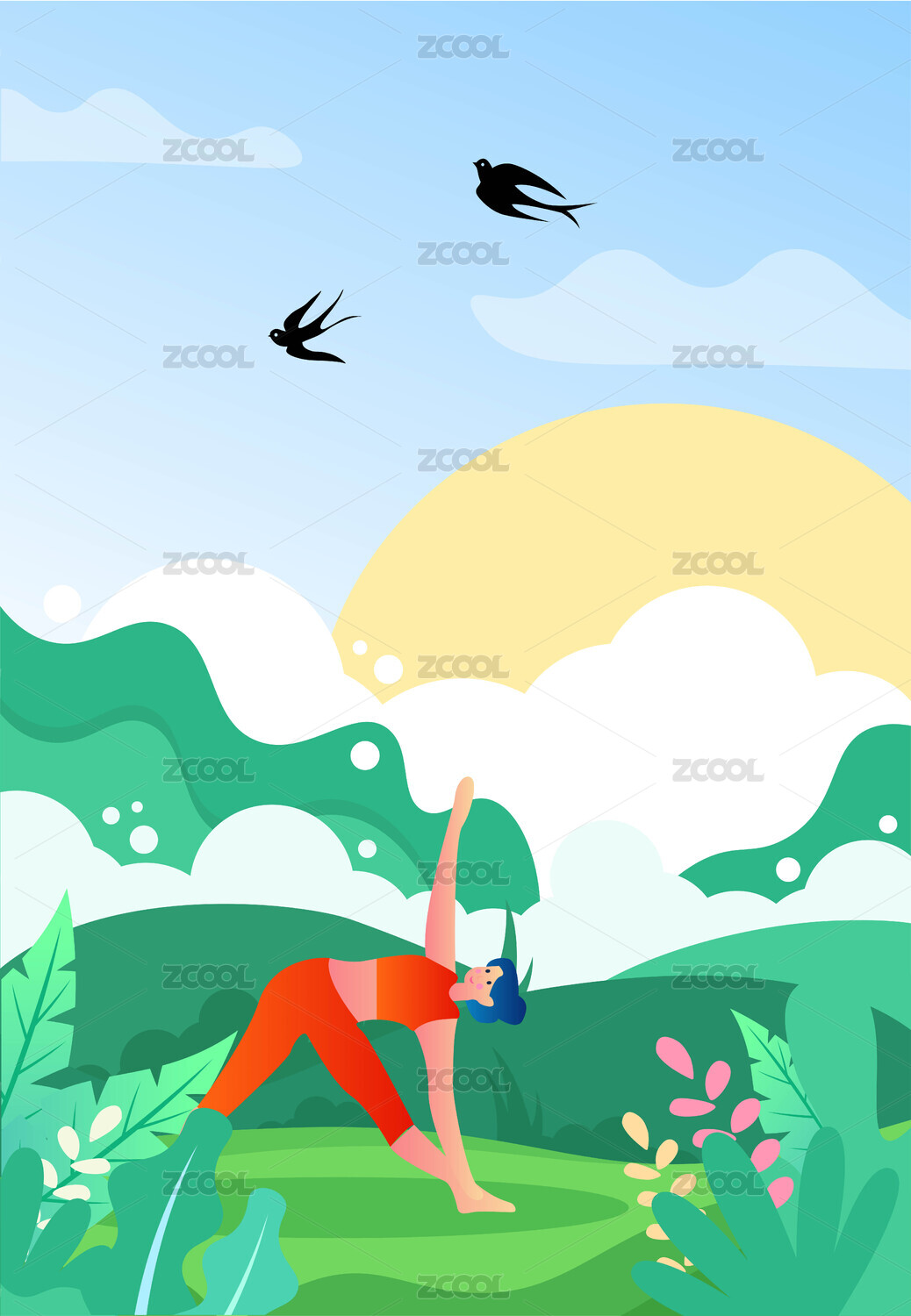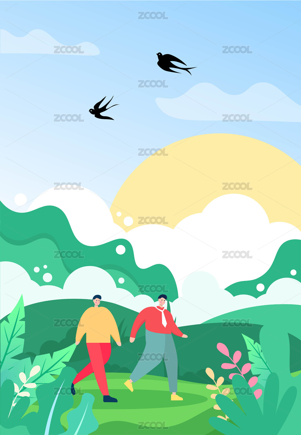 卡通春季春天立春节气节日户外郊游矢量渐变