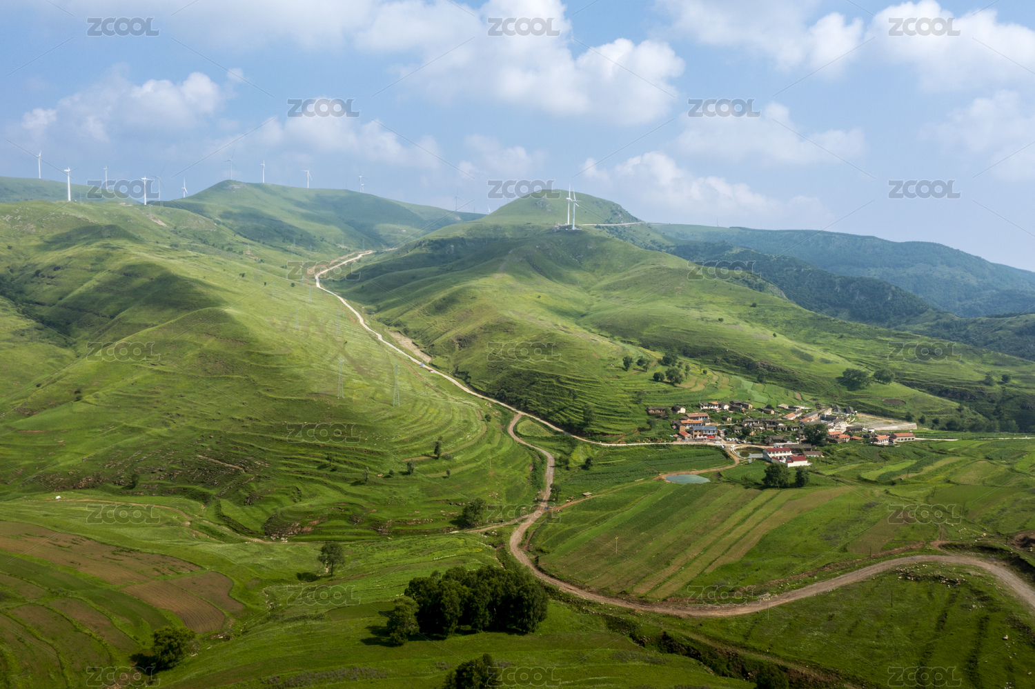 坝上的风电和田地