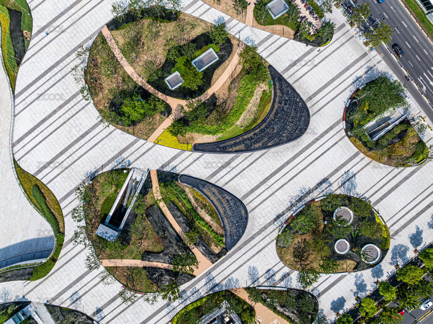 俯瞰办公区的公园