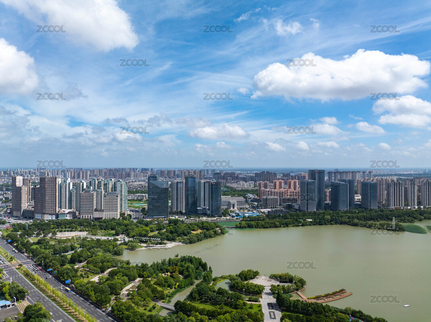 中国江苏苏州金鸡湖CBD城市航拍风光
