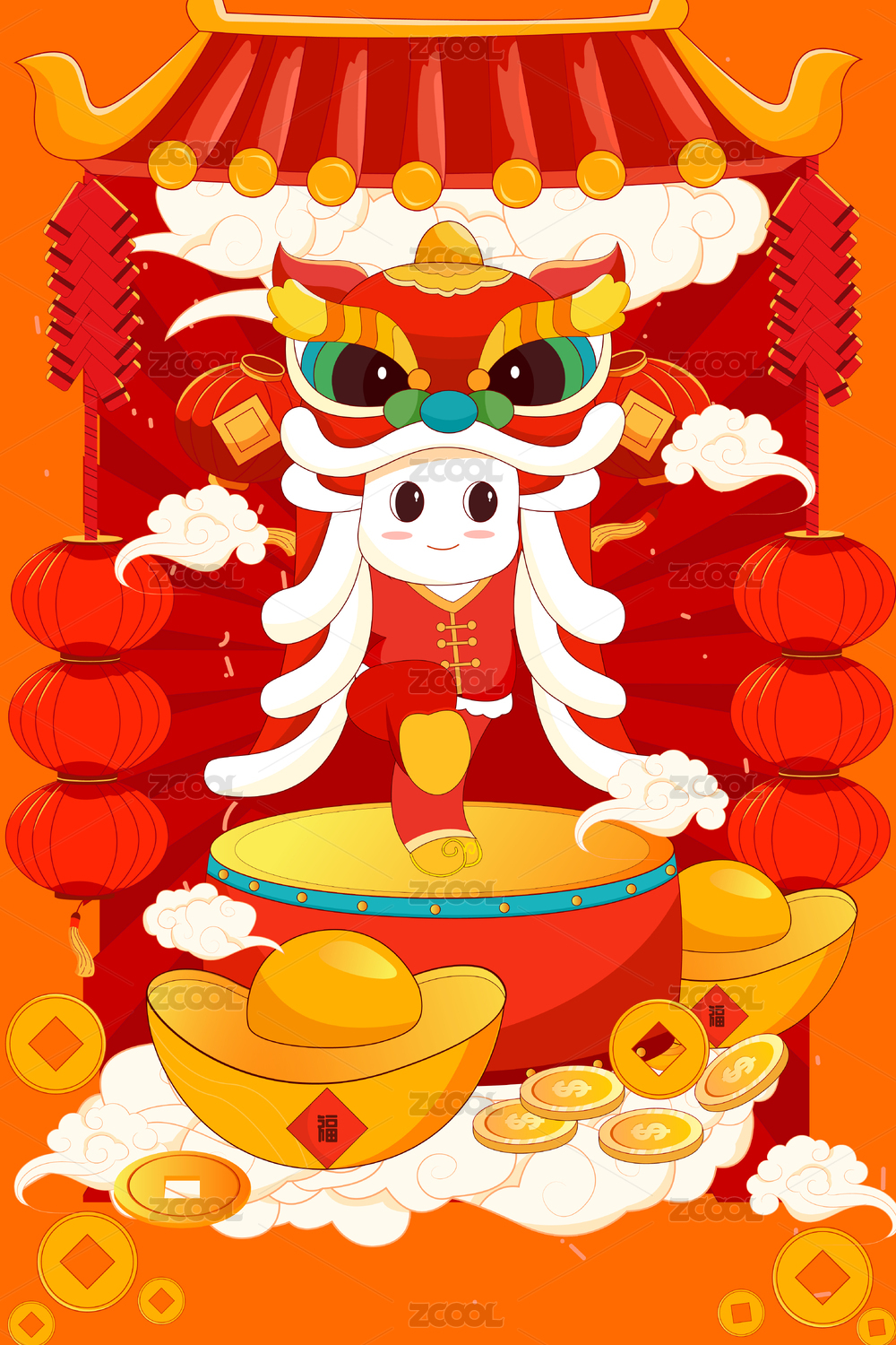 国潮风传统年俗插画