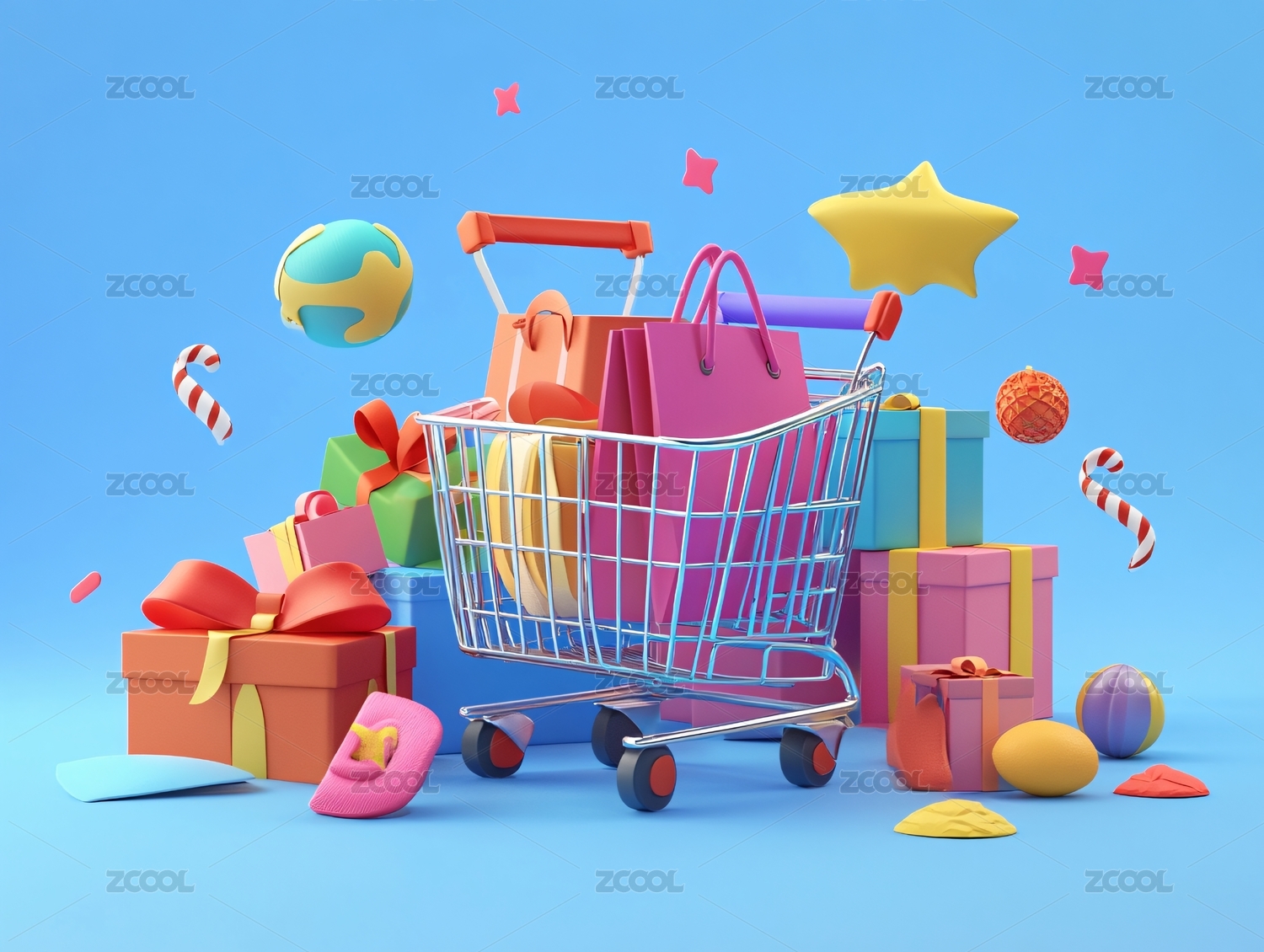 DXCZ202401,电商,双十一,购物,单身节,插画,购物车,篮子,商品,风格