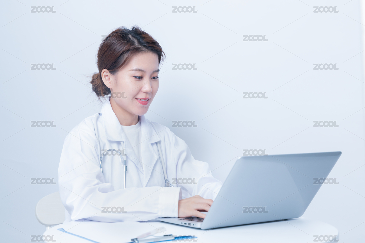 医生,女性,东方人像,年轻,漂亮,医务工作者,听诊器,办公桌,电脑,白大褂