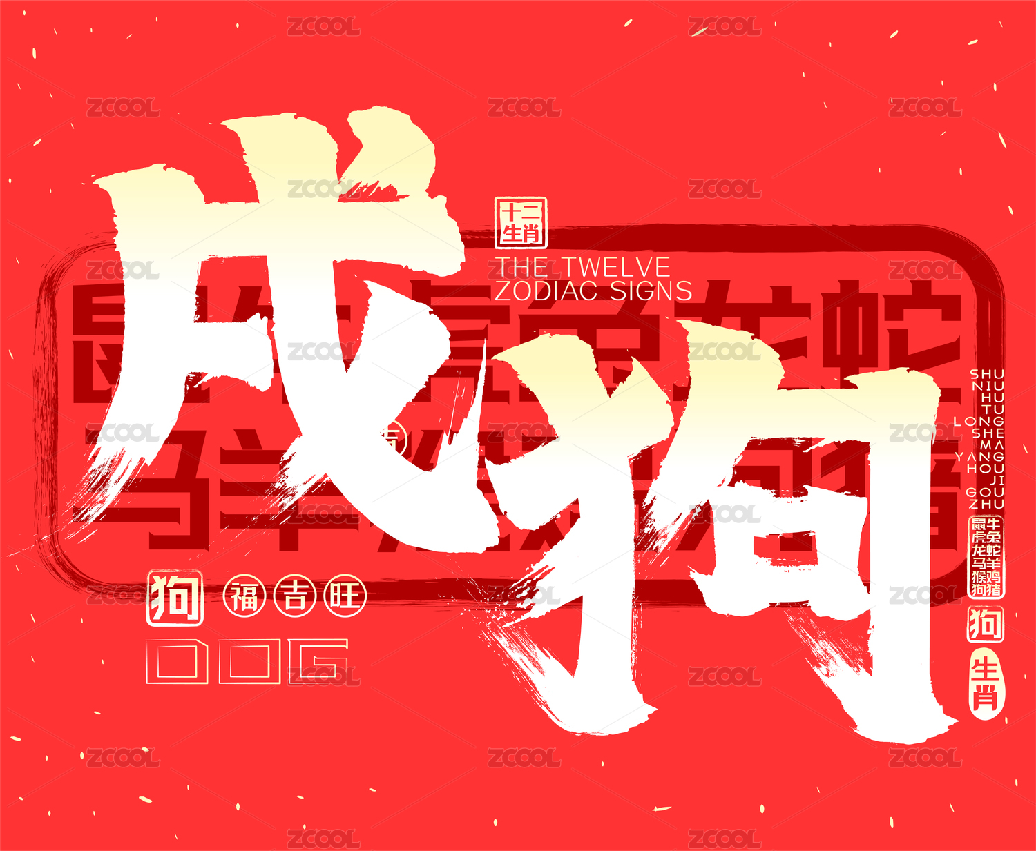 十二生肖戍狗金色发光喜庆中国风矢量毛笔字