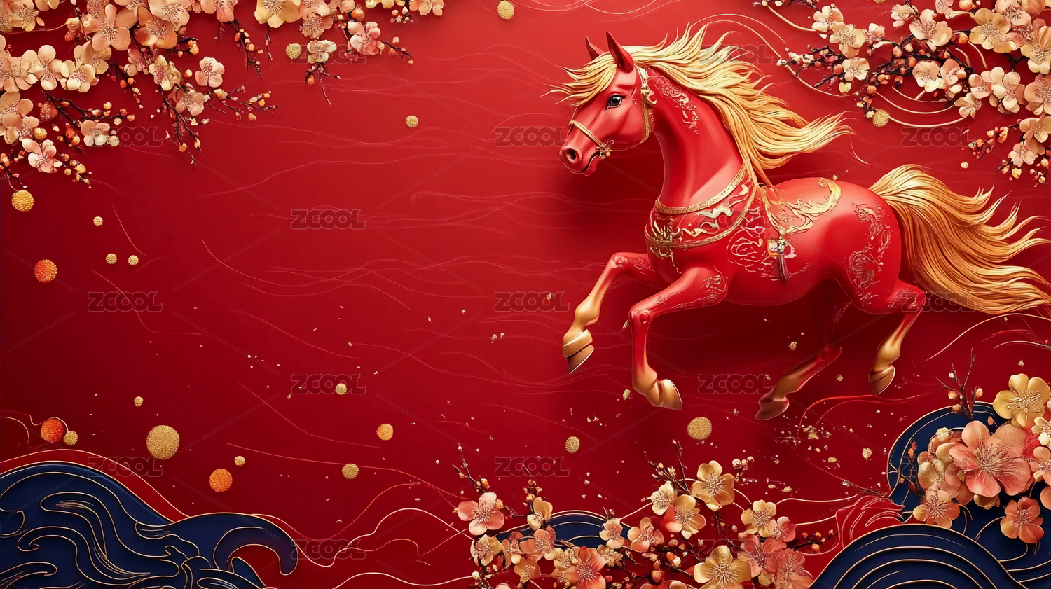 金马踏浪红背景