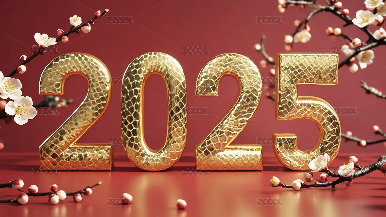 蛇年新年元旦节日喜庆“2025”梅花红色