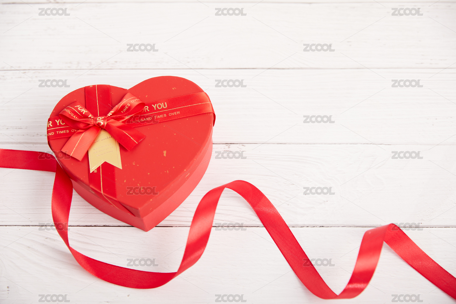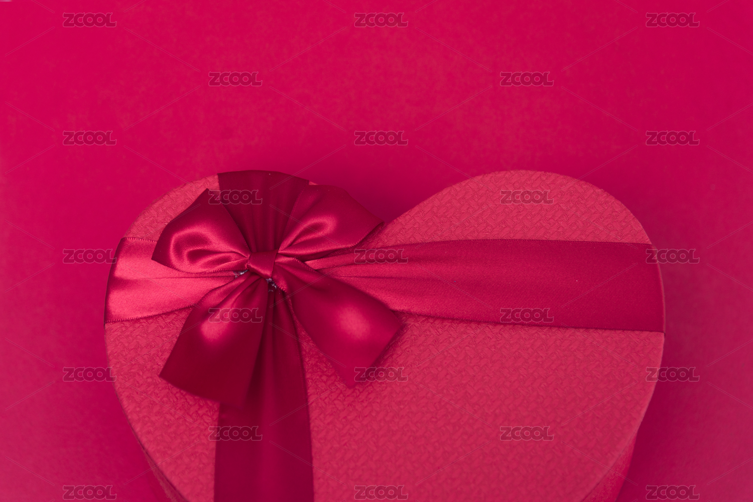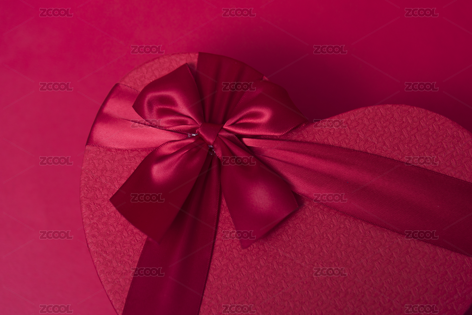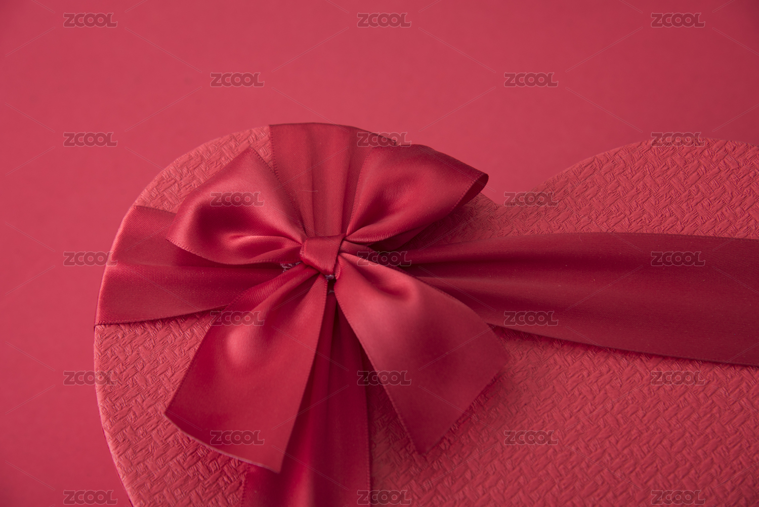 立着放在红色背景的绑着香槟色带子的红色礼品盒局部
