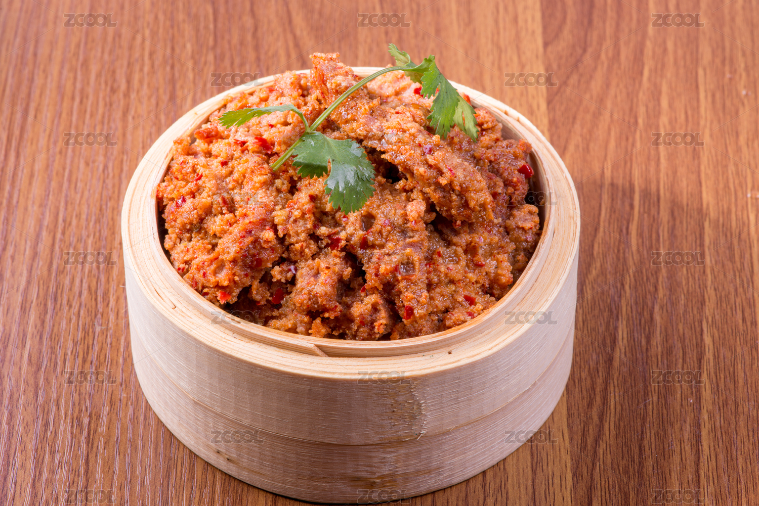 小竹蒸笼上的粉蒸肉粉粉蒸羊肉五花肉