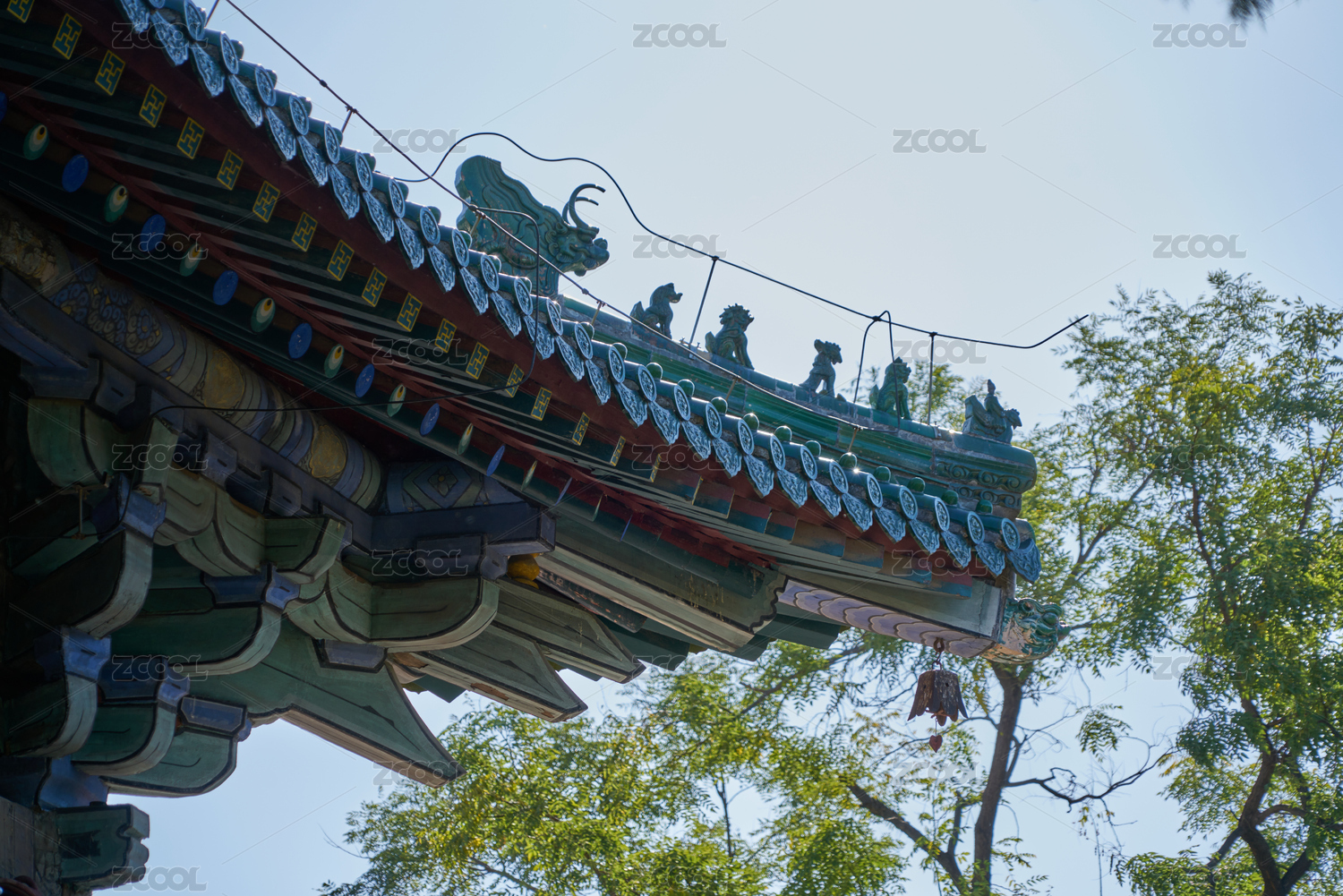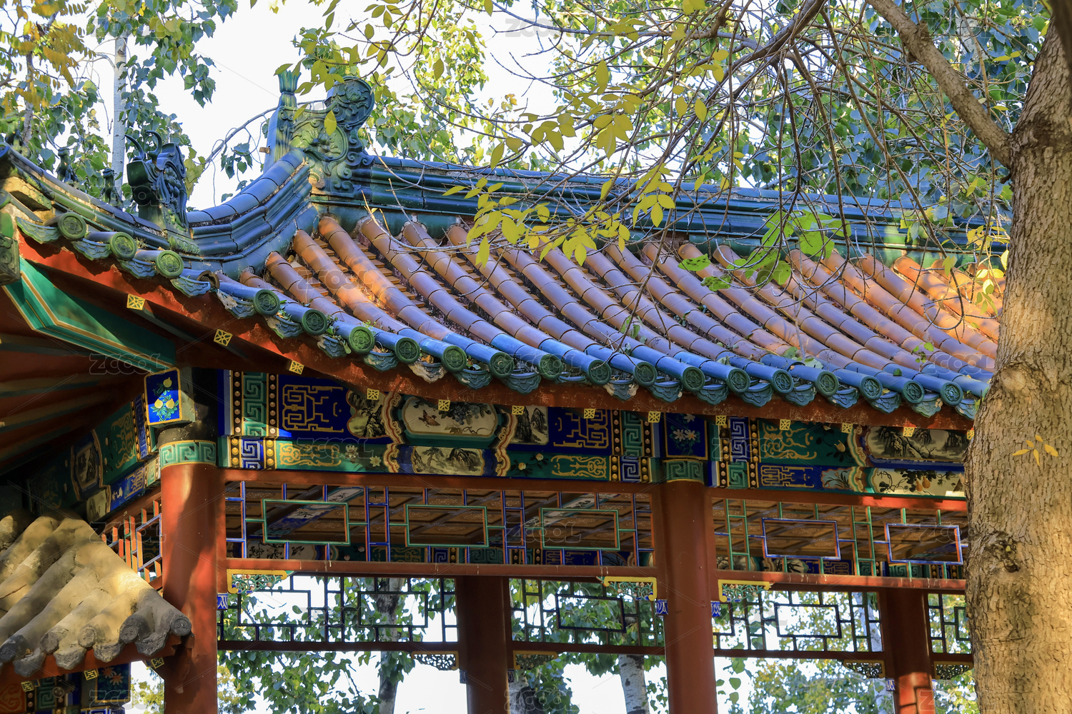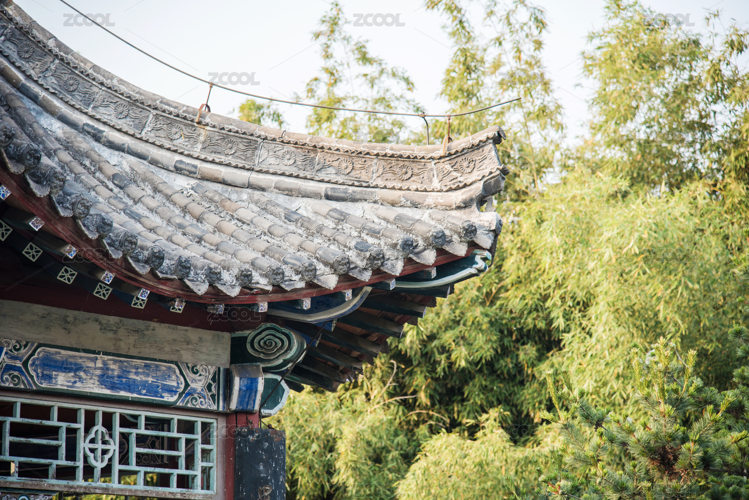 中国山东省济南市趵突泉景区内古建筑彩绘斗角