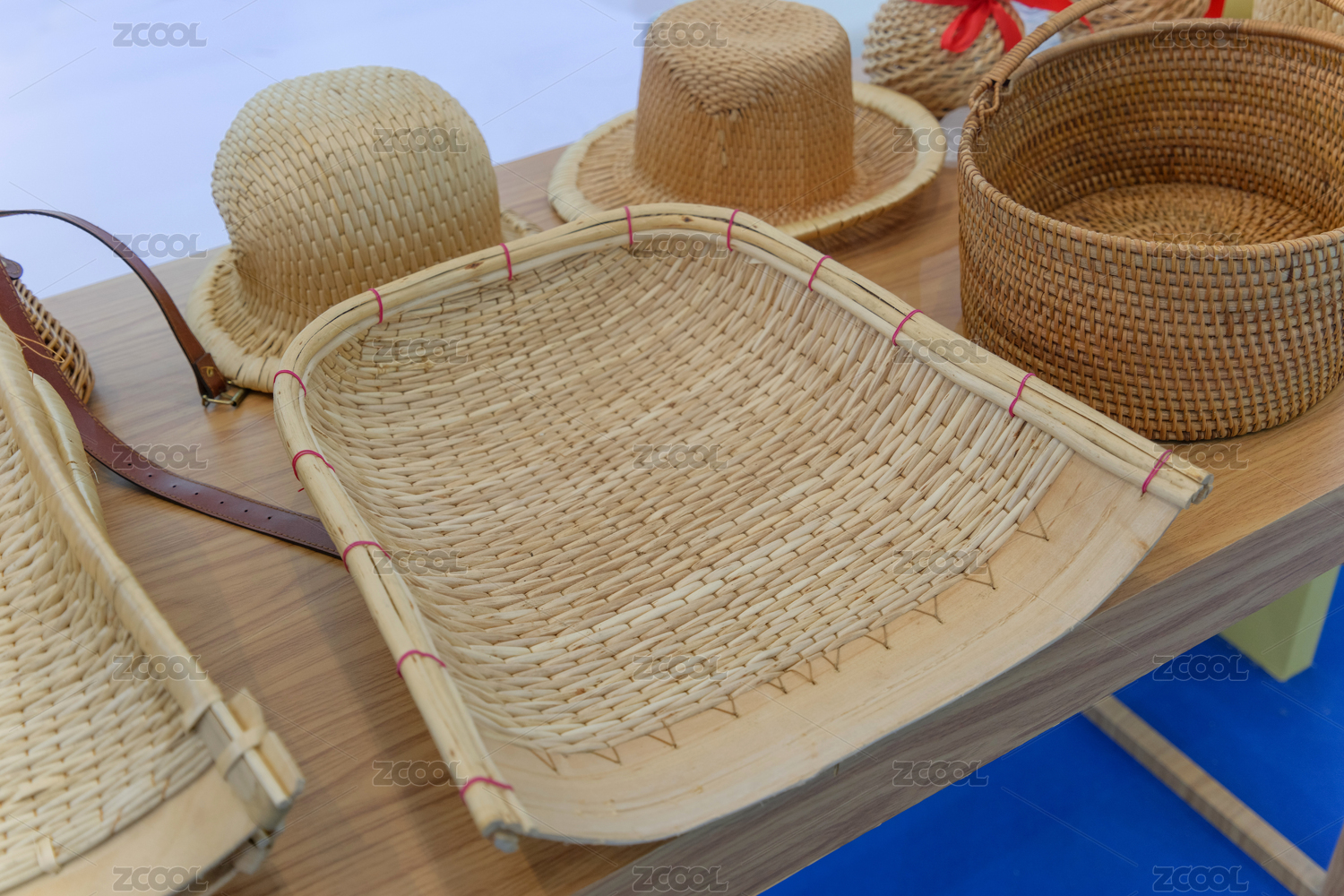 中国云南省西双版纳傣族竹编鱼箩提篮日用品