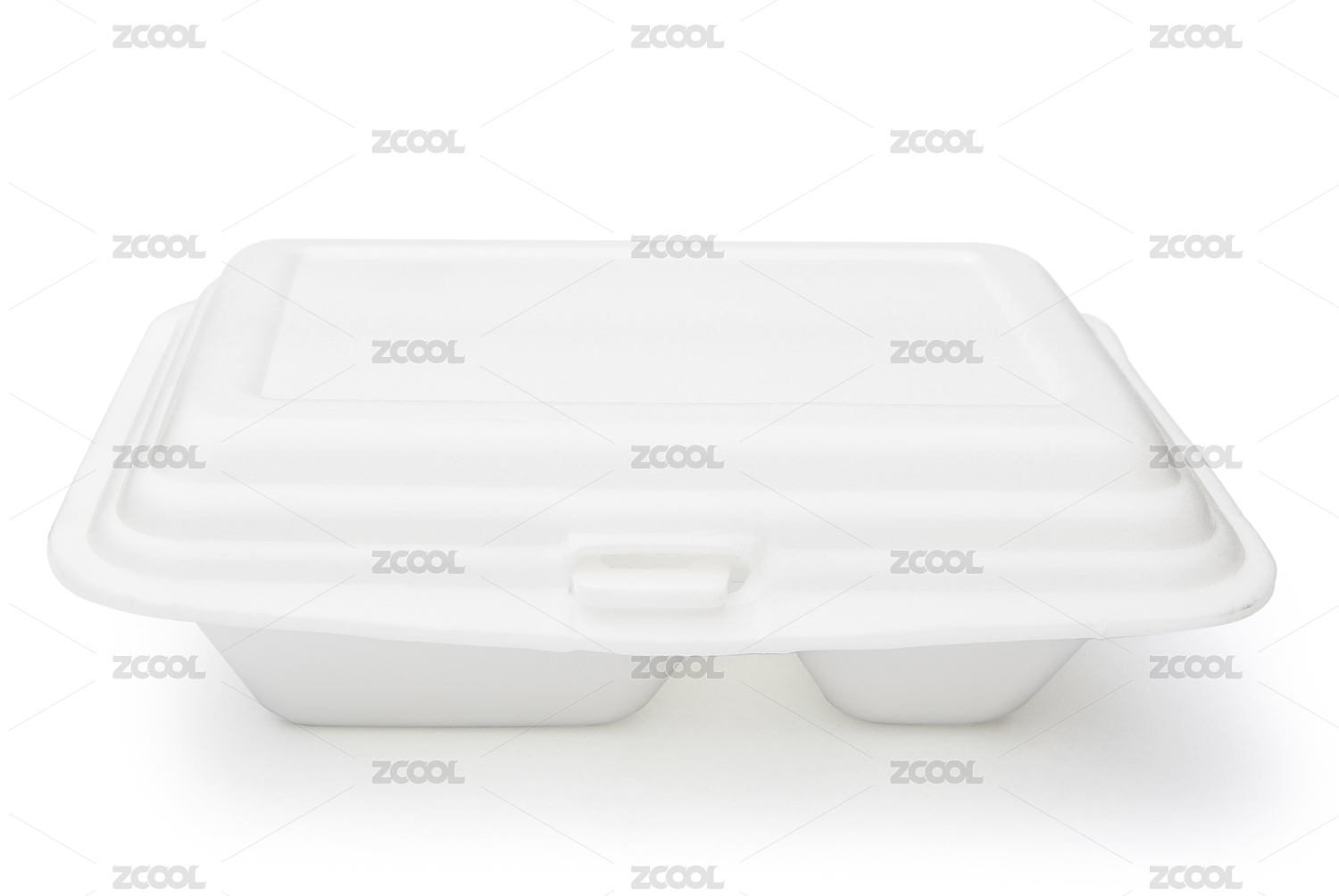 白色背景上的白色一次性环保餐盒和一次性筷子