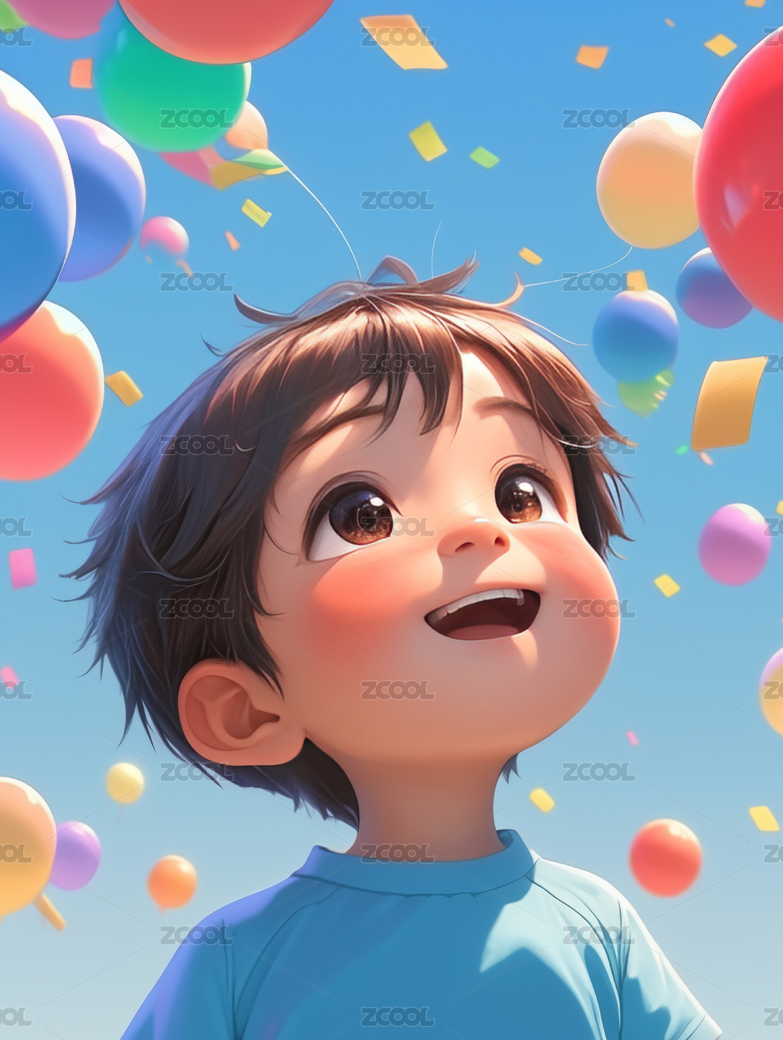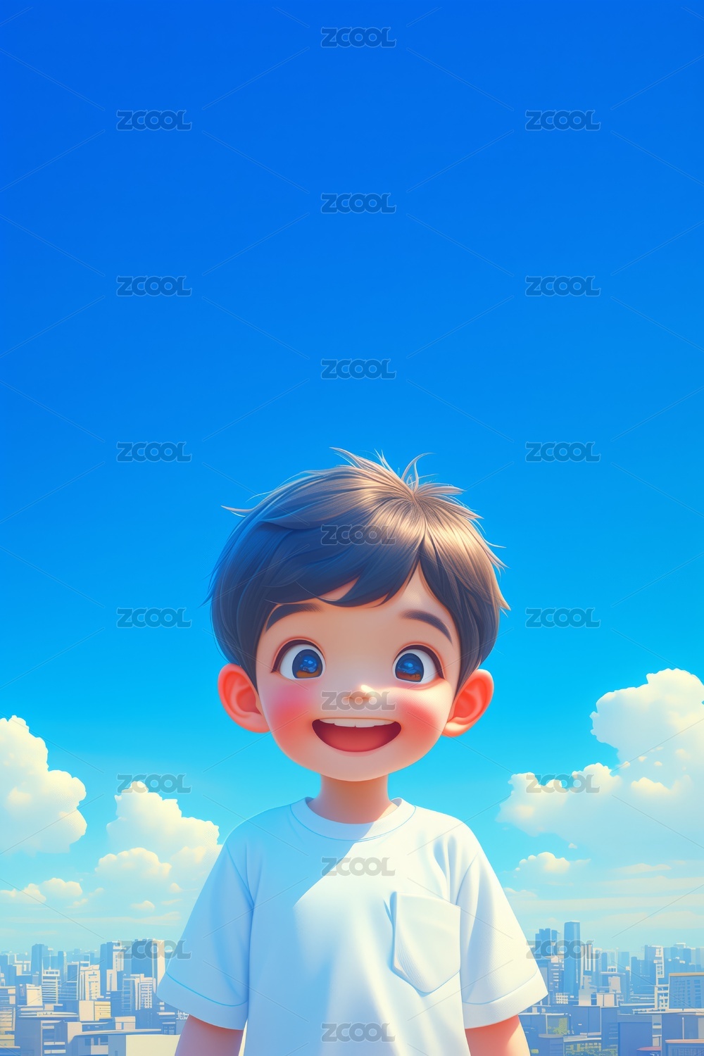 六一儿童节可爱大眼睛大笑的小男孩3D卡通