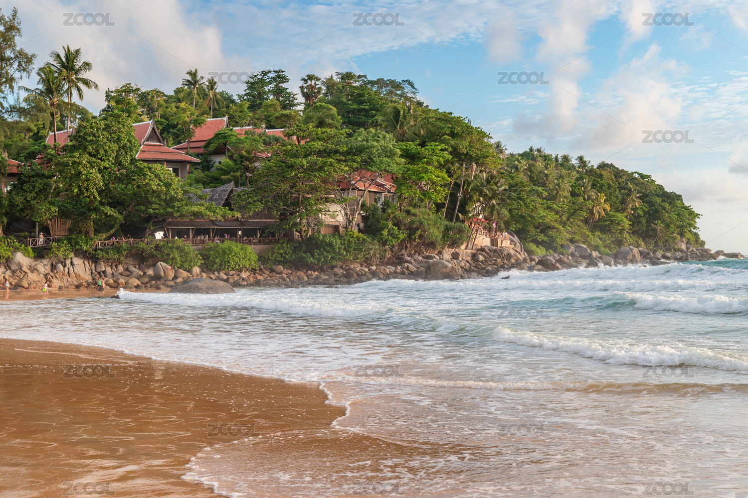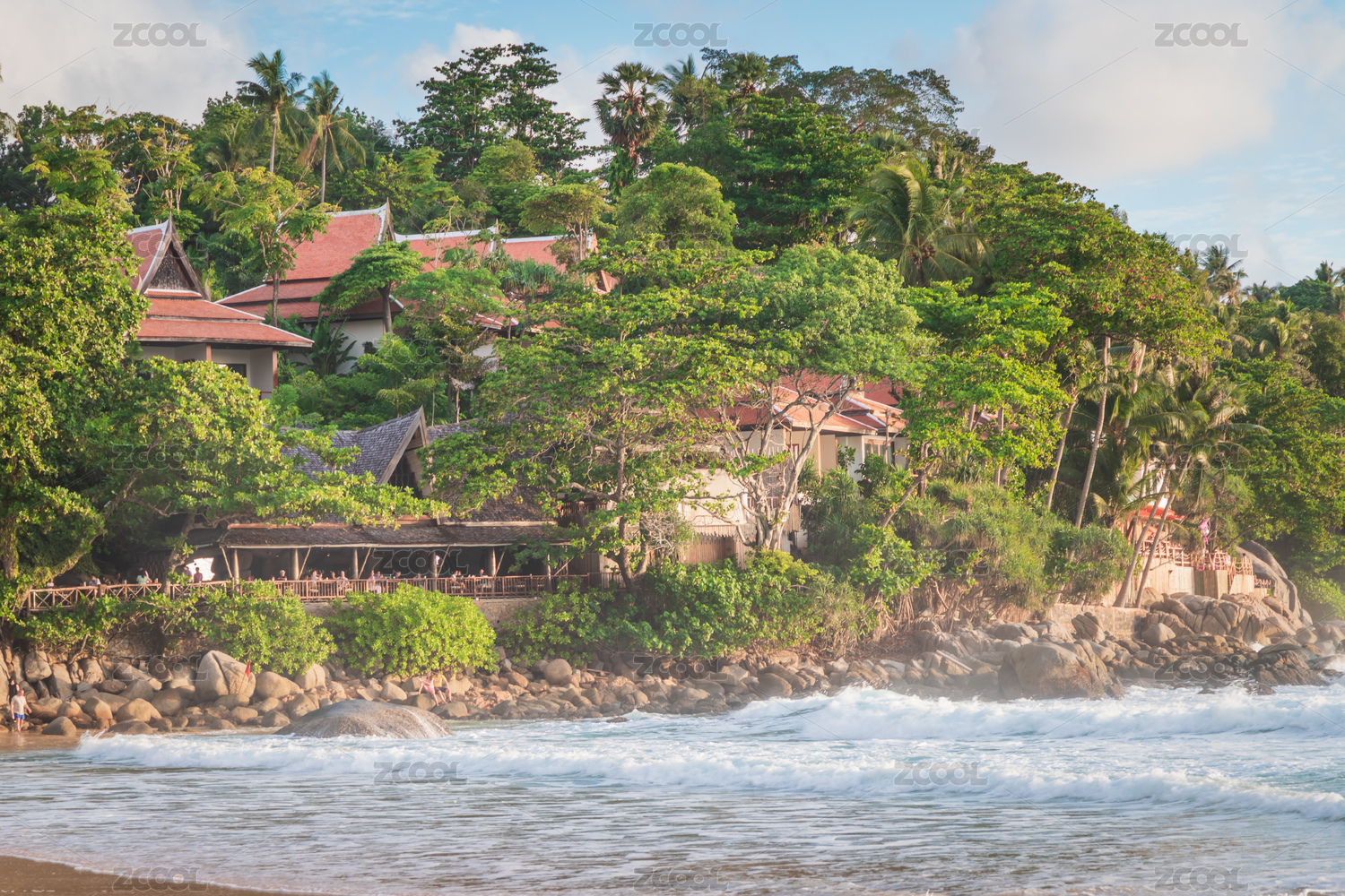 泰国普吉岛卡伦海滩日落海滨热带雨林自然风