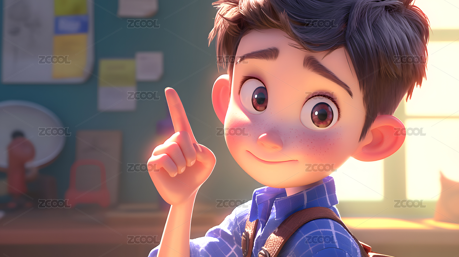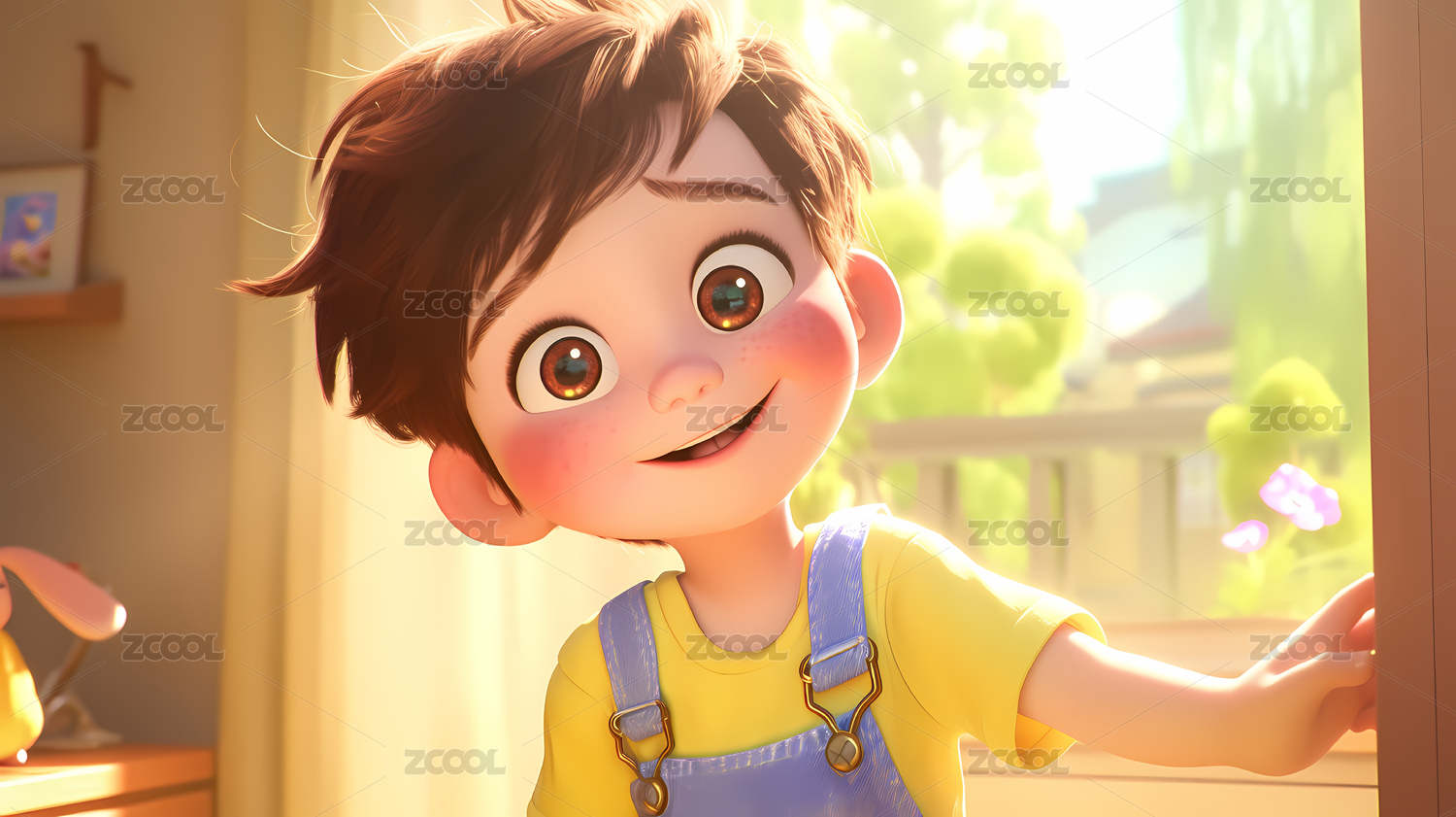 可爱卡通小男孩微笑看向镜头