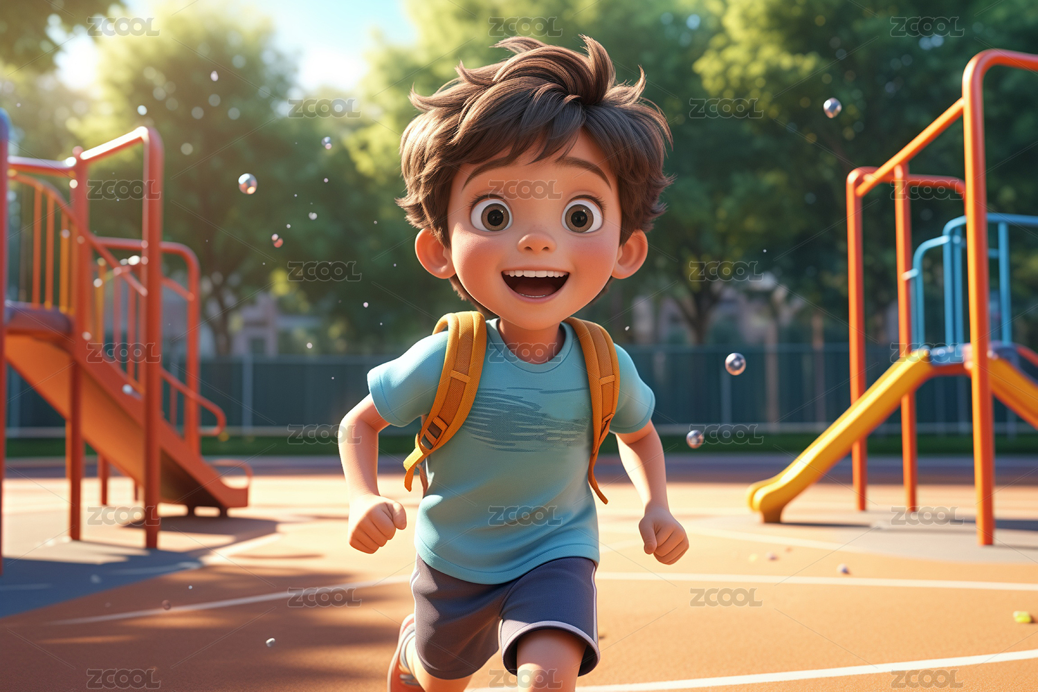 游乐场里玩耍的男孩
